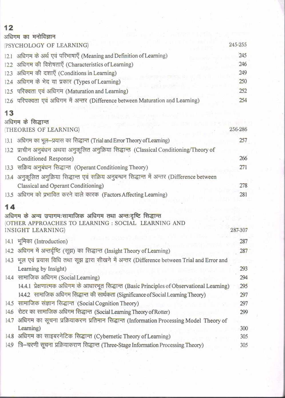सिद्धान्तों के मौलिक लक्षणों / संप्रत्ययों का स्पष्ट ज्ञान संग्रहण कर सकें तथा इन सिद्धान्तों के शैक्षिक निहितार्थों को अपने व्यावसायिक जीवन में उपयोगी ढंग से प्रयुक्त कर सकें। तपश्चात् स्मृति एवं विस्मृति के लक्षणों, महत्वपूर्ण कारकों तथा इन से जुड़ी शिक्षण अधिगम की समस्याओं की चर्चा भी पर्याप्त विस्तार से की गई है। बालकों का अधिगम कई कारकों के हस्तक्षेप से प्रभावित होता है। जिनमें से परिपक्वता, आवधान, थकान तथा अभिप्रेरणा विशेष महत्व के होते हैं। इन से सम्बंधित कारकों तथा संप्रत्ययों का वर्णन विभिन्न अध्याय में विस्तार से किया गया है। अधिगम से जुड़ी उच्च मानसिक प्रक्रियाओं- चिन्तन तथा कल्पना का उनक