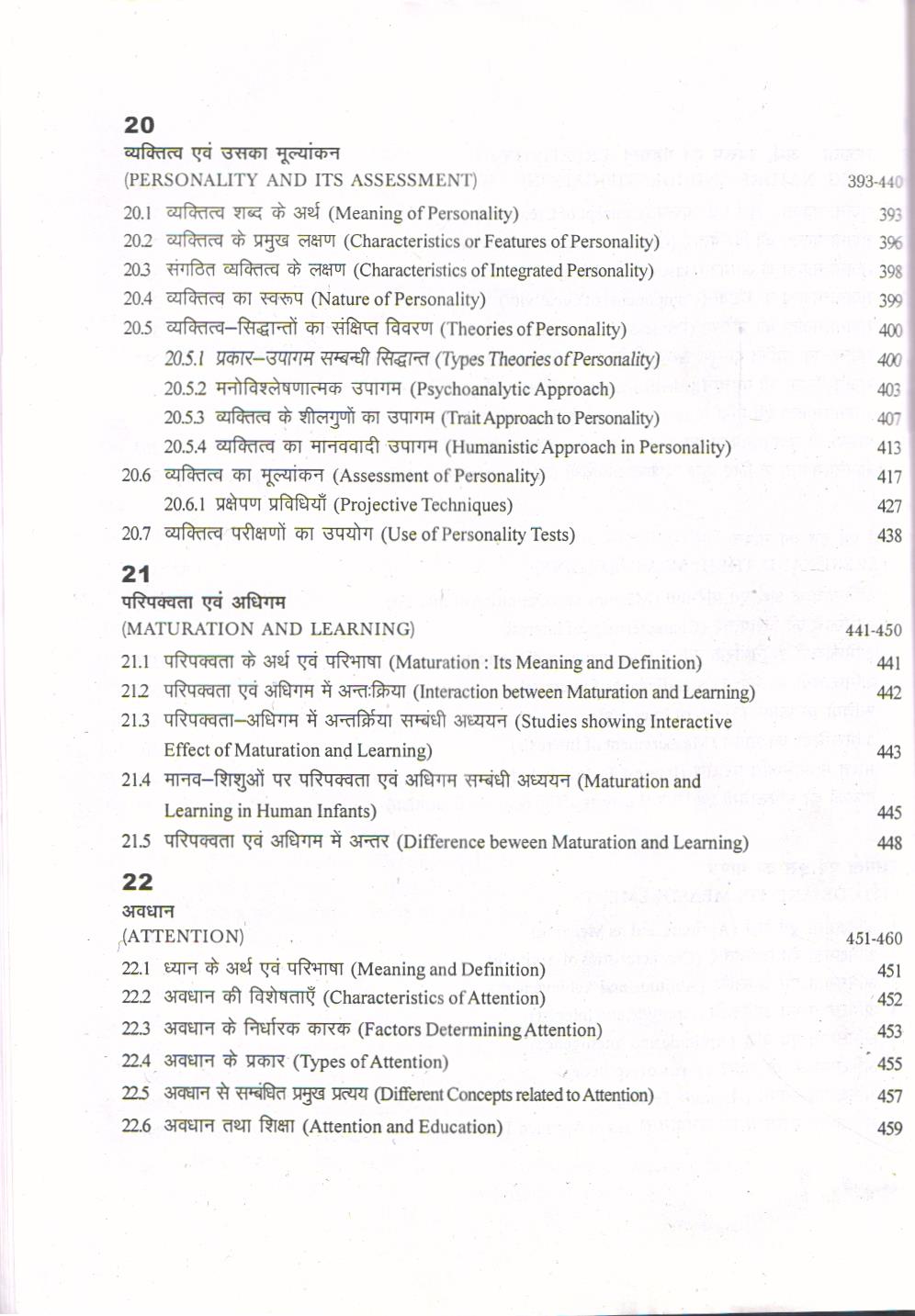 प्रकारों तथा शैक्षिक निहितार्थों सहित विस्तृत विवरण भी दिया गया है। बालक शिक्षा का केन्द्र बिन्दु होता है। शिक्षार्थी के मनोविज्ञान के प्रमुख पक्षों, विशेष रूप से बुद्धि, स की रूचियों, अभिक्षमताओं, रचनात्मकता तथा व्यक्तित्व की प्रकृति, व्यक्तित्व-सिद्धान्तों के प्रमुख उपागम व्यक्तित्व-मूल्यांकन से जुड़े अध्यायों को स्मृति एवं विस्मृति के विवरण के बाद रखा गया है।