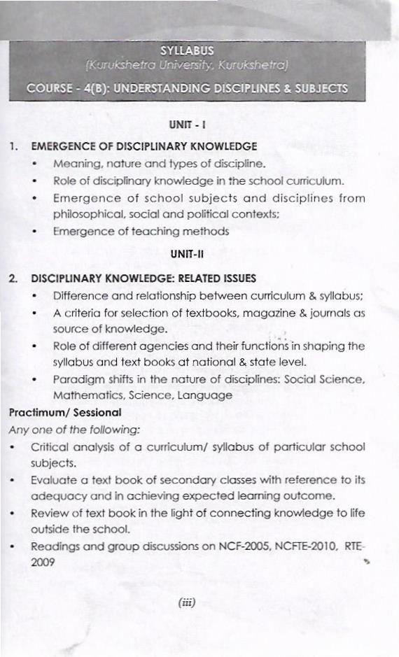 अध्ययन क्षेत्रों और विषयो की समझ | Understanding Disciplines And Subject (Hindi)