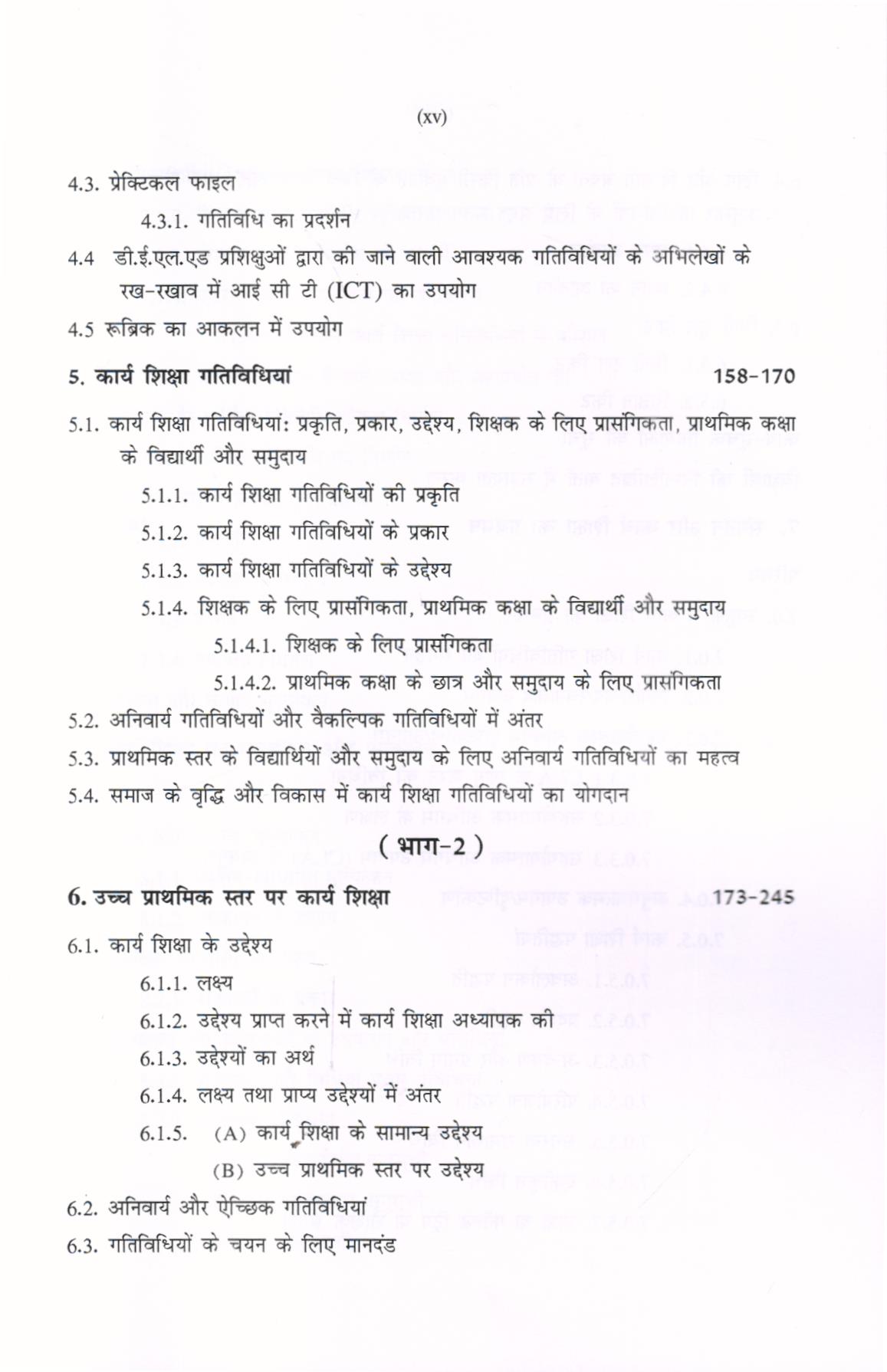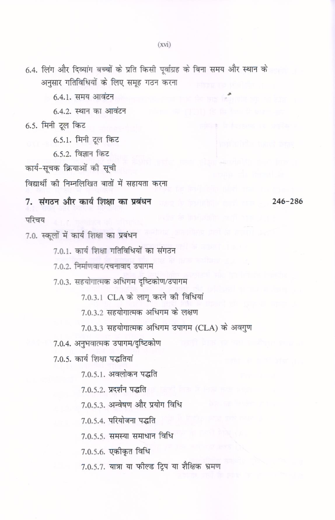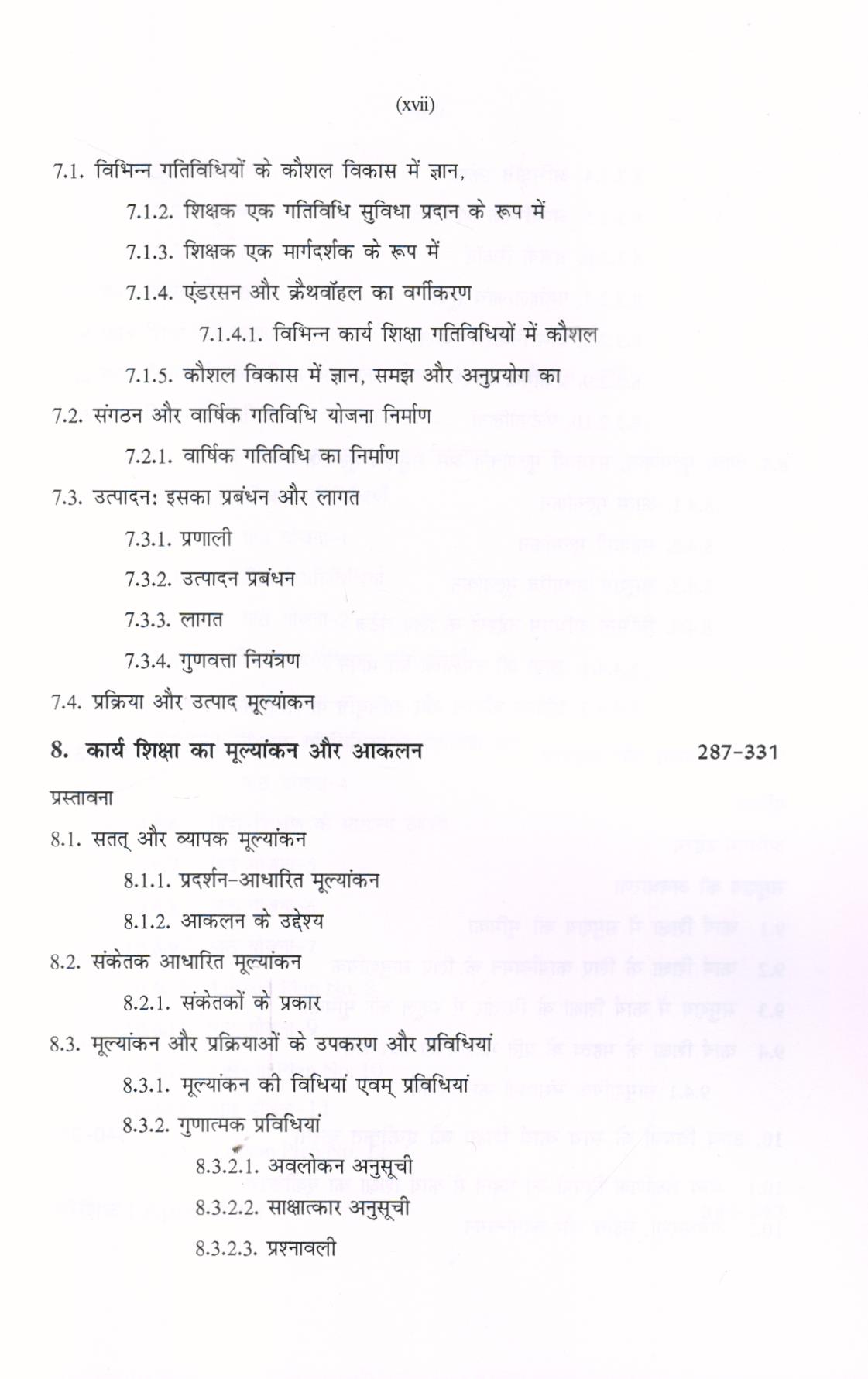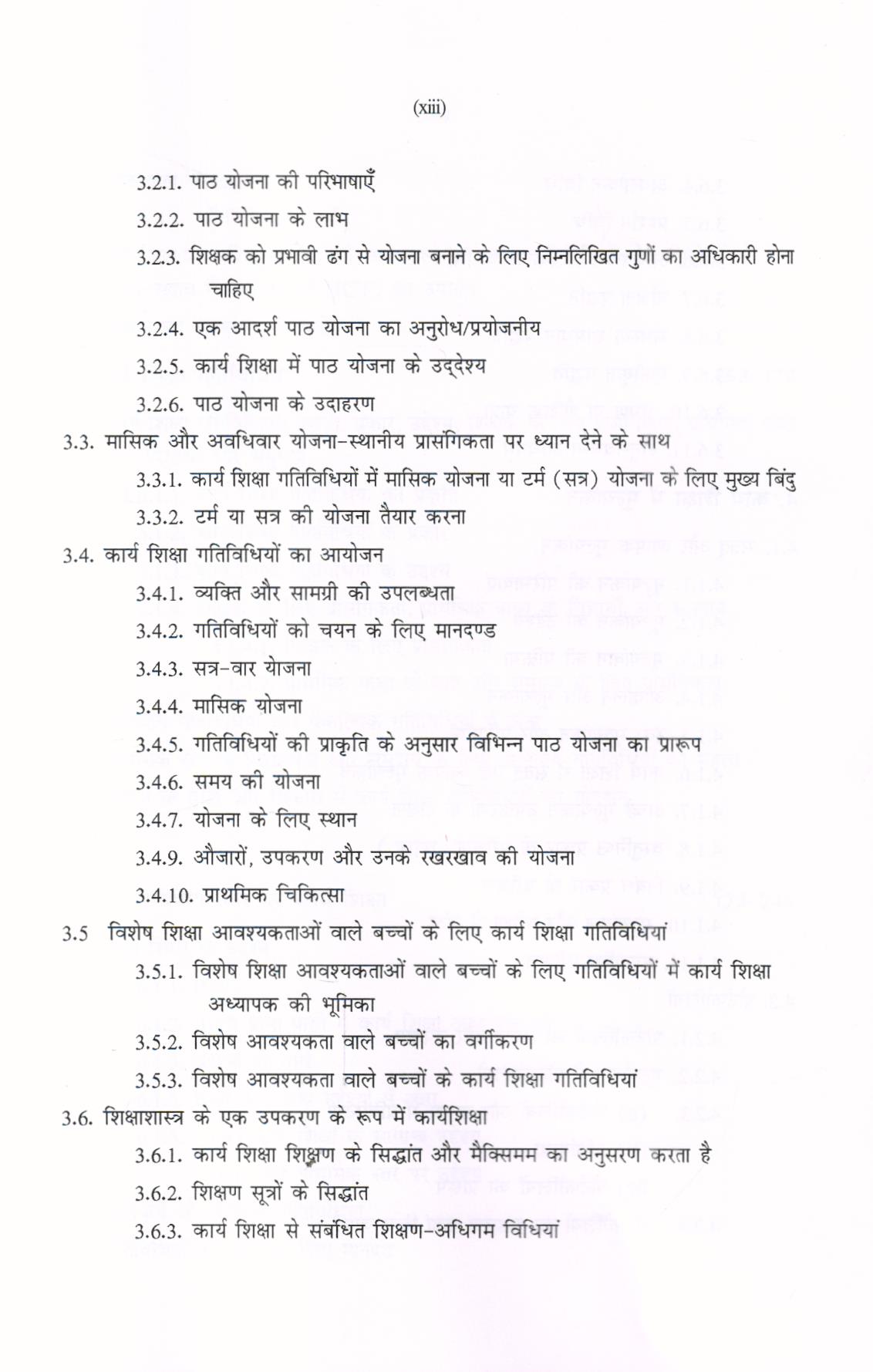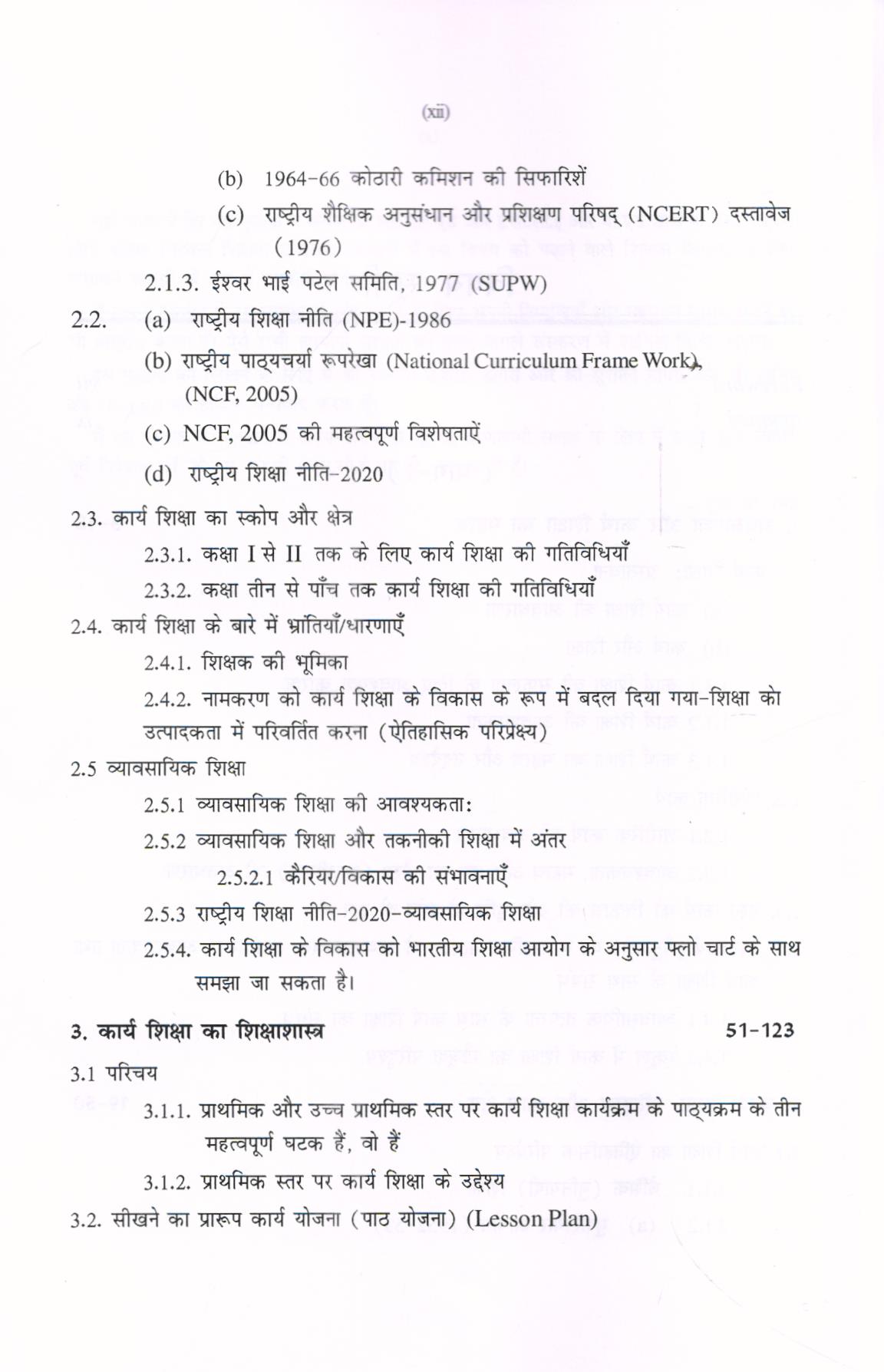 इस पुस्तक की विषय वस्तु आधुनिक है। विभिन्न शिक्षा आयोगों की महत्वपूर्ण सिफारिशों को पूरी तरह से शामिल किया गया है। इस पुस्तक में दस अध्याय है, वे हैं (भाग-1) (i) अवधारणा और कार्य शिक्षा का महत्व; (ii) कार्य शिक्षाः इतिहास और कार्य क्षेत्र; (iii) कार्य शिक्षा का शिक्षाशास्त्र; (iv) कार्य शिक्षा में मूल्यांकन; (v) कार्य शिक्षा गतिविधियां (भाग-2) (vi) उच्च प्राथमिक स्तर पर कार्य शिक्षा; (vii) संगठन और कार्य शिक्षा का प्रबंधन; (viii) कार्य शिक्षा का मूल्यांकन और आकलन; (ix) कार्य शिक्षा और समुदाय; (x) अन्य विषयों के साथ कार्य शिक्षा को एकीकृत करना। D.El.Ed प्रश्न पत्र और ग्रंथ सूची के साथ-साथ परिशिष्ट (Appendix) तथा राष्ट्रीय शिक्षा नीति-2020 तथा व्यावसायिक शिक्षा से संबंधित सिफारिशें भी जोड़ी गई हैं।