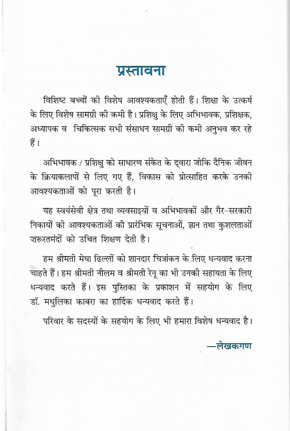 हम श्रीमती मेघा ढिल्लों को शानदार चित्रांकन के लिए धन्यवाद करना चाहते हैं। हम श्रीमती नीलम व श्रीमती रेनू का भी उनकी सहायता के लिए धन्यवाद करते हैं। इस पुस्तिका के प्रकाशन में सहयोग के लिए डॉ. मधुलिका काबरा का हार्दिक धन्यवाद करते हैं।