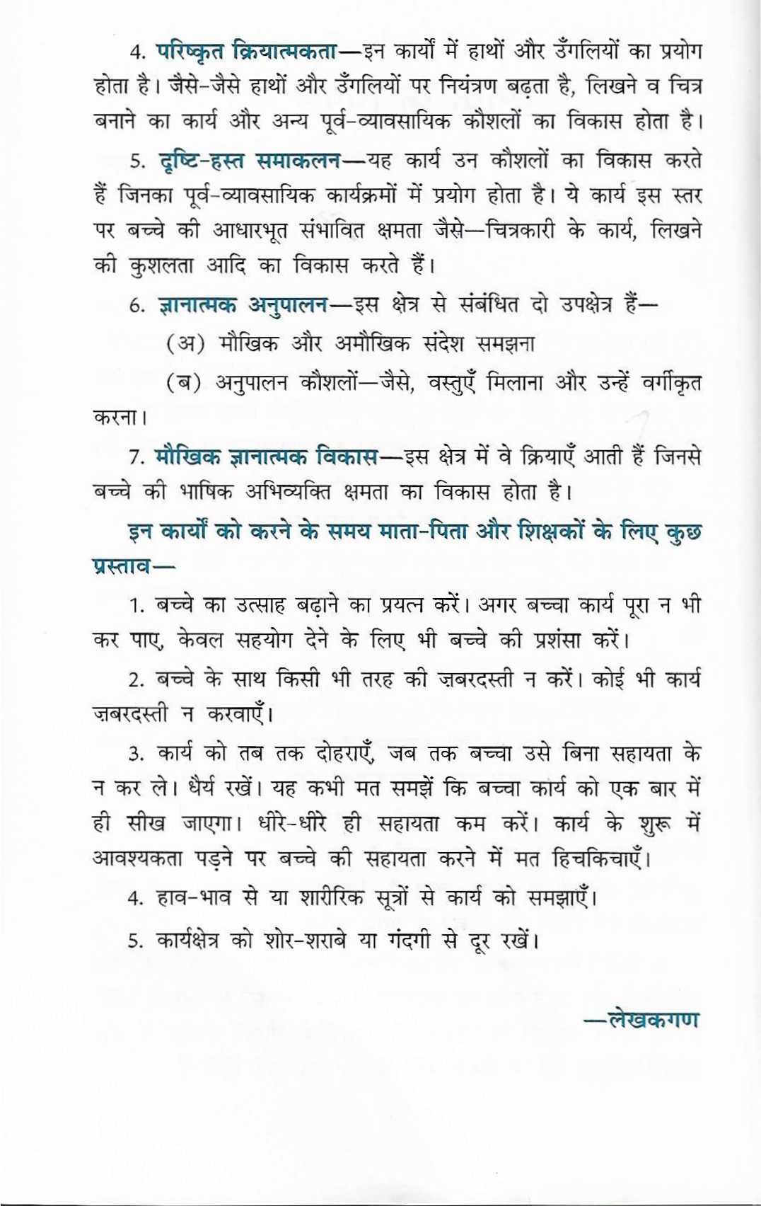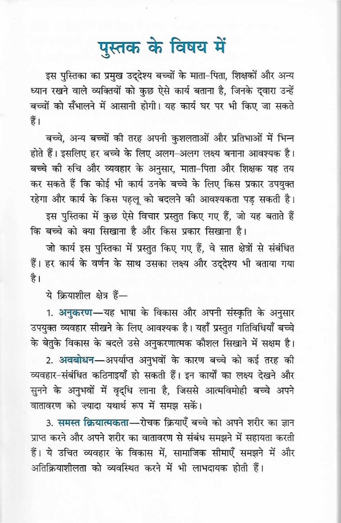 अभिभावक / प्रशिक्षु को साधारण संकेत के द्वारा जोकि दैनिक जीवन के क्रियाकलापों से लिए गए हैं, विकास को प्रोत्साहित करके उनकी आवश्यकताओं को पूरा करती है।