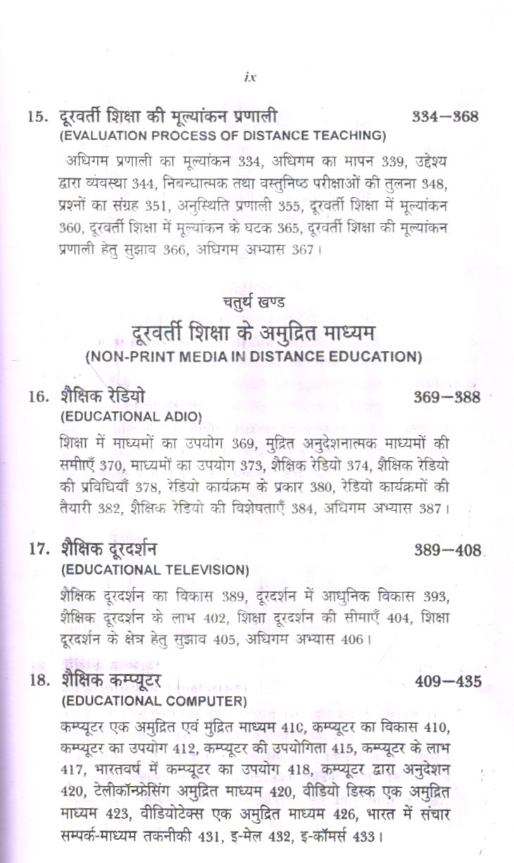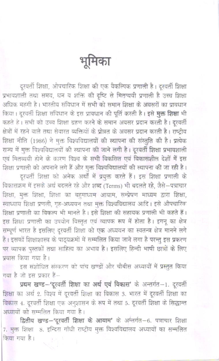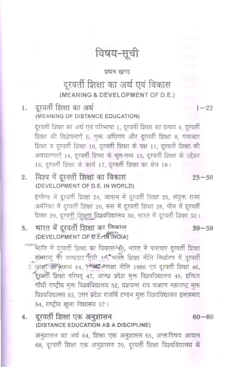 प्रथम खण्ड- ‘दूरवर्ती शिक्षा का अर्थ एवं विकास’ के अन्तर्गत- 1. दूरवर्ती शिक्षा का अर्थ 2. विश्व में दूरवर्ती शिक्षा का विकास 3. भारत में दूरवर्ती शिक्षा का