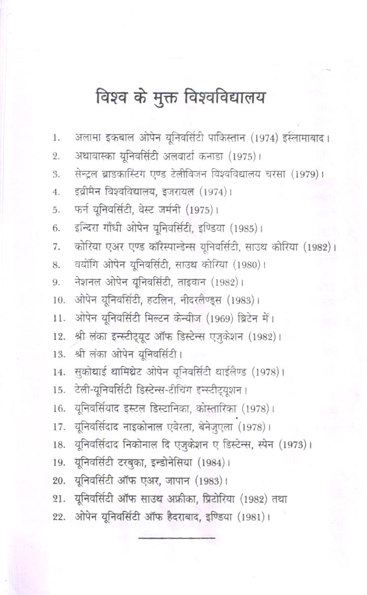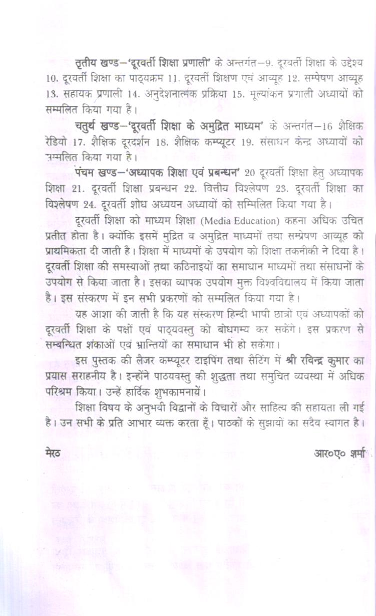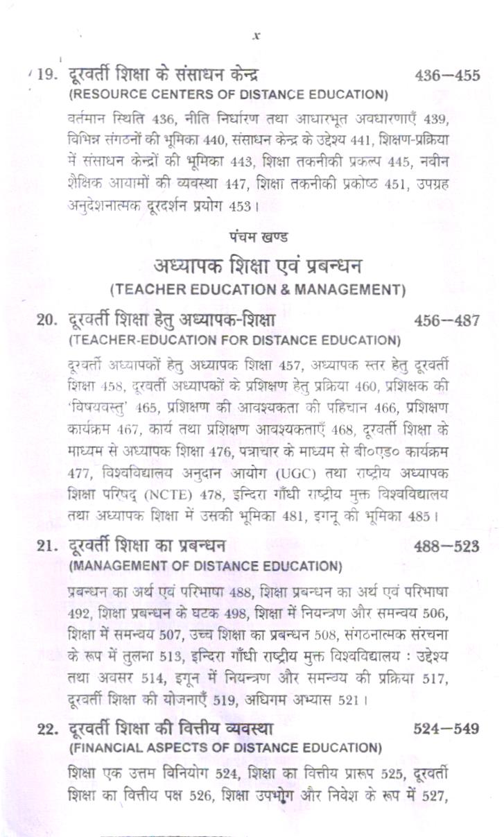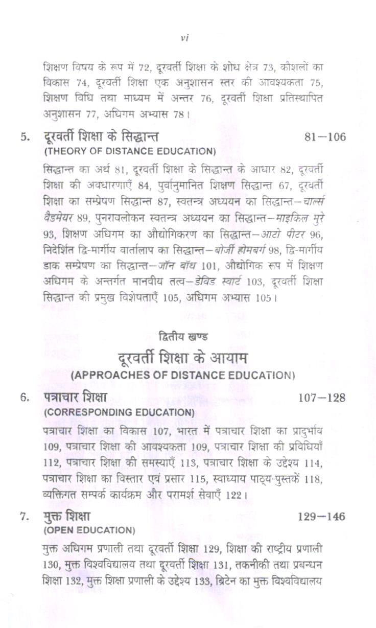 विकास 4. दूरवर्ती शिक्षा एक अनुशासन के रूप में तथा 5. दूरवर्ती शिक्षा के सिद्धान्त