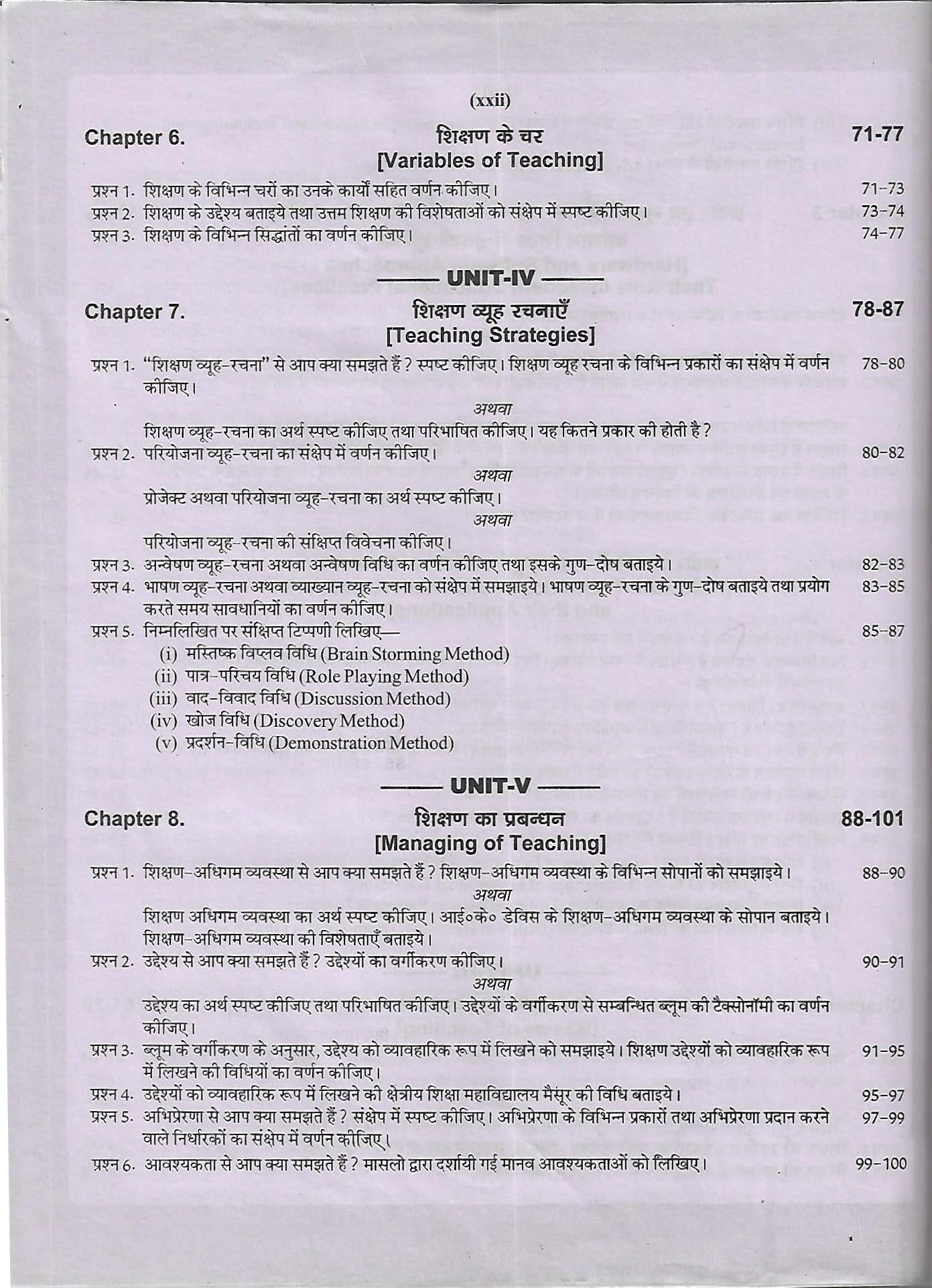प्रस्तुत पुस्तक विद्यार्थियों की आवश्यकताओं के अनुरूप उपयोगी सिद्ध होगी तथा उनको प्रभावशाली शक्षकों के निर्माण में योग प्रदान करेगी। प्रस्तुत के प्रकाशन, बाहरी आवरण तथा पाठकों तक पहुँचने का सम्पूर्ण श्रेय मै० आर० लाल बुक डिपो के प्रो० श्री विनय रखेजा जी को जाता है। हम उन्हें धन्यवाद देते हैं।