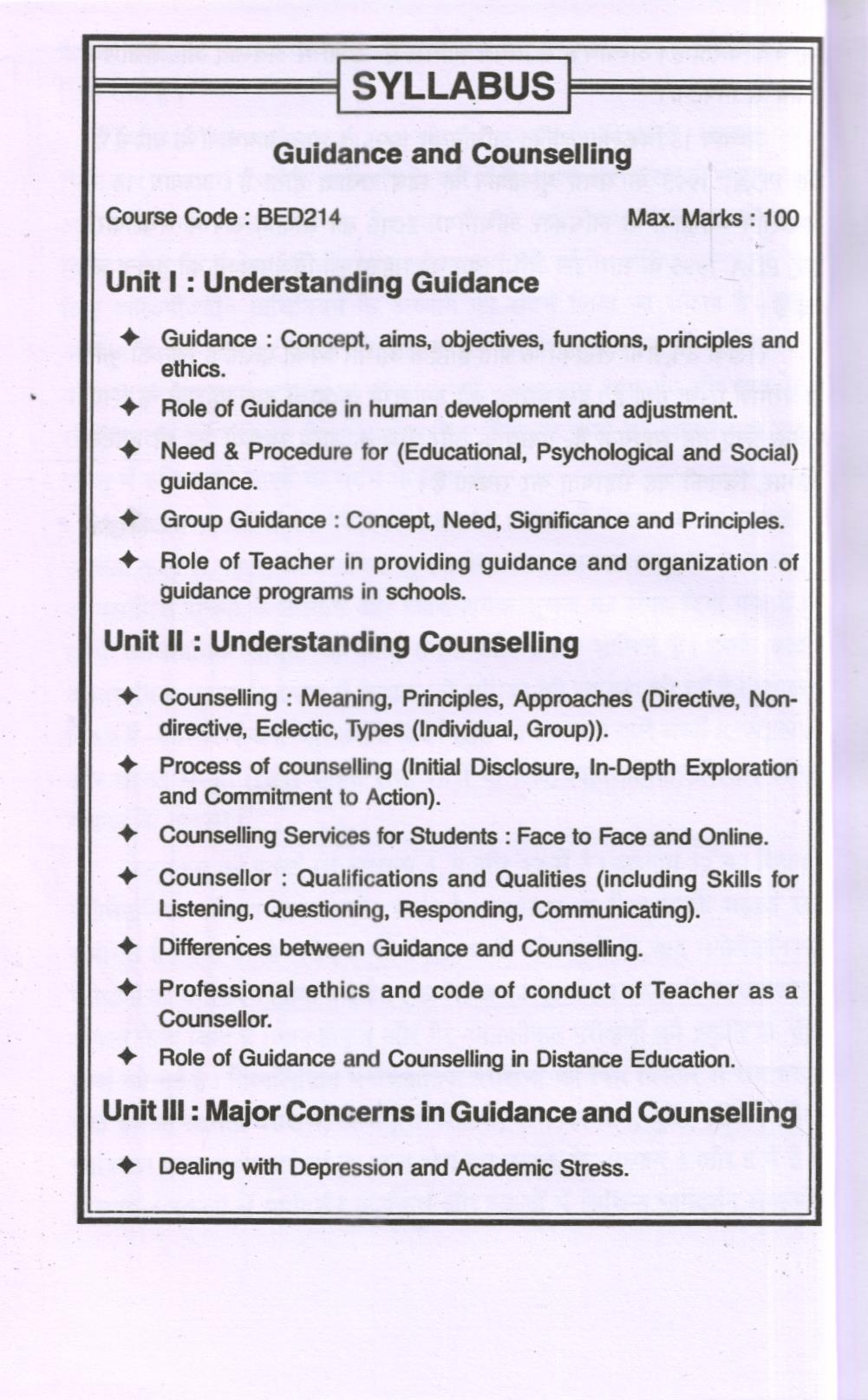 प्रस्तुत पुस्तक में सत्र 2021-22 से लागू जी०जी०एस०आई०पी०यू० पाठ्यक्रम बी०एड०. 14 “मार्गदर्शन एवं परामर्श” में दिए गए विषय शामिल हैं। पाठ्यक्रम की 4 इकाइयों के सभी विषयों को विस्तृत रूप से सम्मिलित किया गया है। पाठ्यक्रम के जिन नए विषयों को इस पुस्तक में शामिल किया गया है; वे हैं-