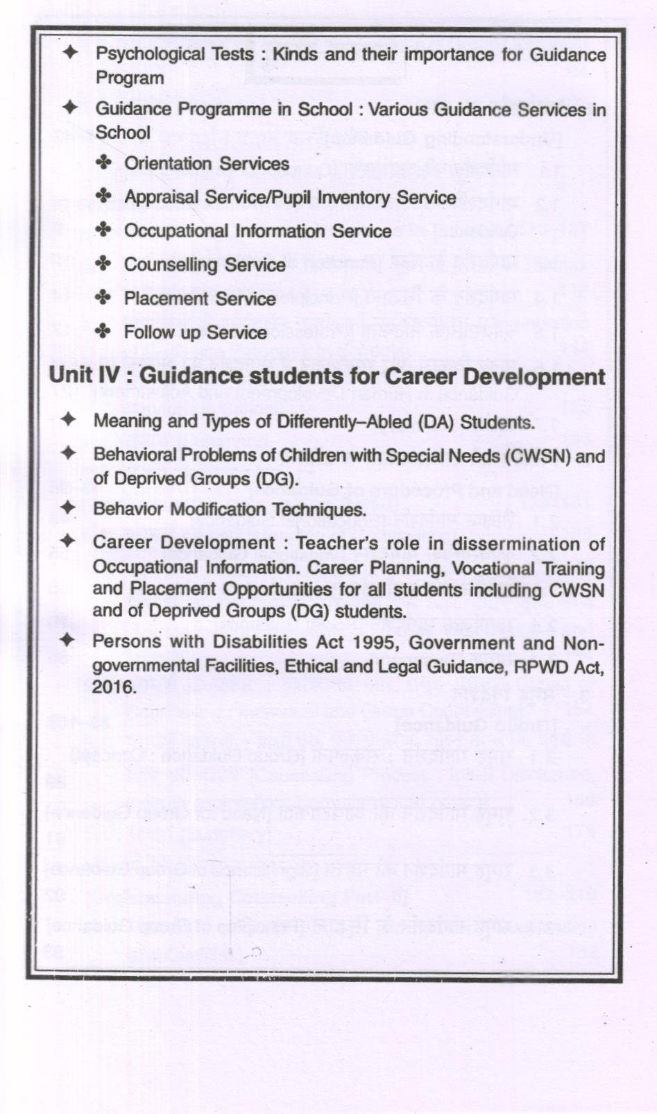 अध्याय 1 से 4 में पाठ्यक्रम पाठ्यचर्या की इकाई 1 से विषय शामिल हैं और इकाई 3 से भी एक विषय शामिल है। अध्याय 1 “मार्गदर्शन को समझना”