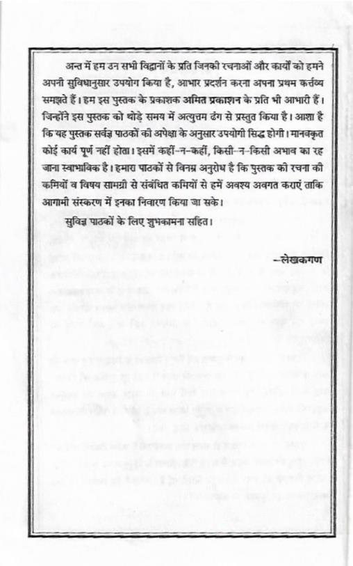 पुस्तक की भाषा अत्यन्त ही सरल तथा प्रवाहमयी है ताकि विद्यार्थी संबंधित विषय-वस्तु को अच्छी प्रकार से समझ सकें। विषय के अनुकूल यह पुस्तक प्रत्येक स्तर के विद्यार्थी को ध्यान में रखकर लिखी गई है। आशा है कि विद्यार्थीगण तथा अध्यापकगण इस पुस्तक का स्वागत करेंगे।