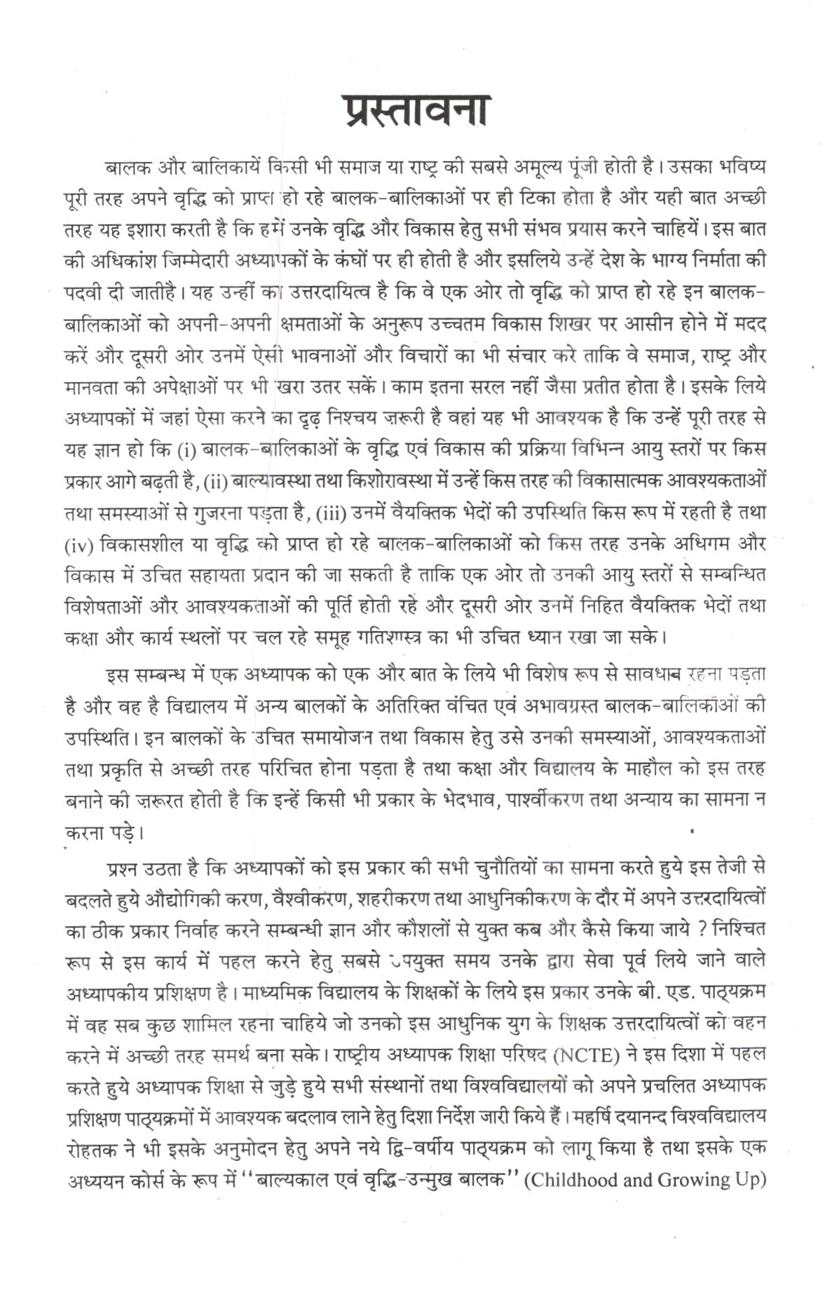 बालक और बालिकायें किसी भी समाज या राष्ट्र की सबसे अमूल्य पूंजी होती है। उसका भविष्य पूरी तरह अपने वृद्धि को प्राप्त हो रहे बालक-बालिकाओं पर ही टिका होता है और यही बात अच्छी तरह यह इशारा करती है कि हमें उनके वृद्धि और विकास हेतु सभी संभव प्रयास करने चाहियें। इस बात की अधिकांश जिम्मेदारी अध्यापकों के कंधों पर ही होती है और इसलिये उन्हें देश के भाग्य निर्माता की पदवी दी जाती है। यह उन्हीं का उत्तरदायित्व है कि वे एक ओर तो वृद्धि को प्राप्त हो रहे इन बालक- बालिकाओं को अपनी-अपनी क्षमताओं के अनुरूप उच्चतम विकास शिखर पर आसीन होने में मदद करें और दूसरी ओर उनमें ऐसी भावनाओं और विचारों का भी संचार करे ताकि वे समाज, राष्ट्र और मानवता की अपेक्षाओं पर भी खरा उतर सकें। काम इतना सरल नहीं जैसा प्रतीत होता है। इसके लिये अध्यापकों में जहां ऐसा करने का दृढ़ निश्चय जरूरी है वहां यह भी आवश्यक है कि उन्हें पूरी तरह से यह ज्ञान हो कि (i) बालक-बालिकाओं के वृद्धि एवं विकास की प्रक्रिया विभिन्न आयु स्तरों पर किस प्रकार आगे बढ़ती है, (ii) बाल्यावस्था तथा किशोरावस्था में उन्हें किस तरह की विकासात्मक आवश्यकताओं तथा समस्याओं से गुजरना पड़ता है, (iii) उनमें वैयक्तिक भेदों की उपस्थिति किस रूप में रहती है तथा (iv) विकासशील या वृद्धि को प्राप्त हो रहे बालक-बालिकाओं को किस तरह उनके अधिगम और विकास में उचित सहायता प्रदान की जा सकती है ताकि एक ओर तो उनकी आयु स्तरों से सम्बन्धित विशेषताओं और आवश्यकताओं की पूर्ति होती रहे और दूसरी ओर उनमें निहित वैयक्तिक भेदों तथा कक्षा और कार्य स्थलों पर चल रहे समूह गतिशास्त्र का भी उचित ध्यान रखा जा सके।