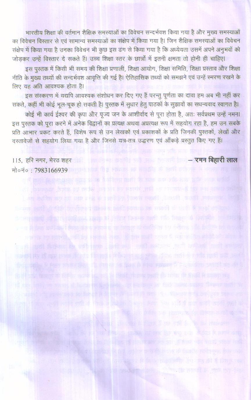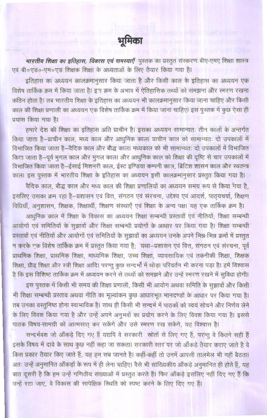 भारतीय शिक्षा का इतिहास, विकास एवं समस्याएँ पुस्तक का प्रस्तुत संस्करण बीएएमए शिक्षाशास्त्र एवं बी०ए०एम०एड शिक्षक शिक्षा के अध्यताओं के लिए तैयार किया गया है।