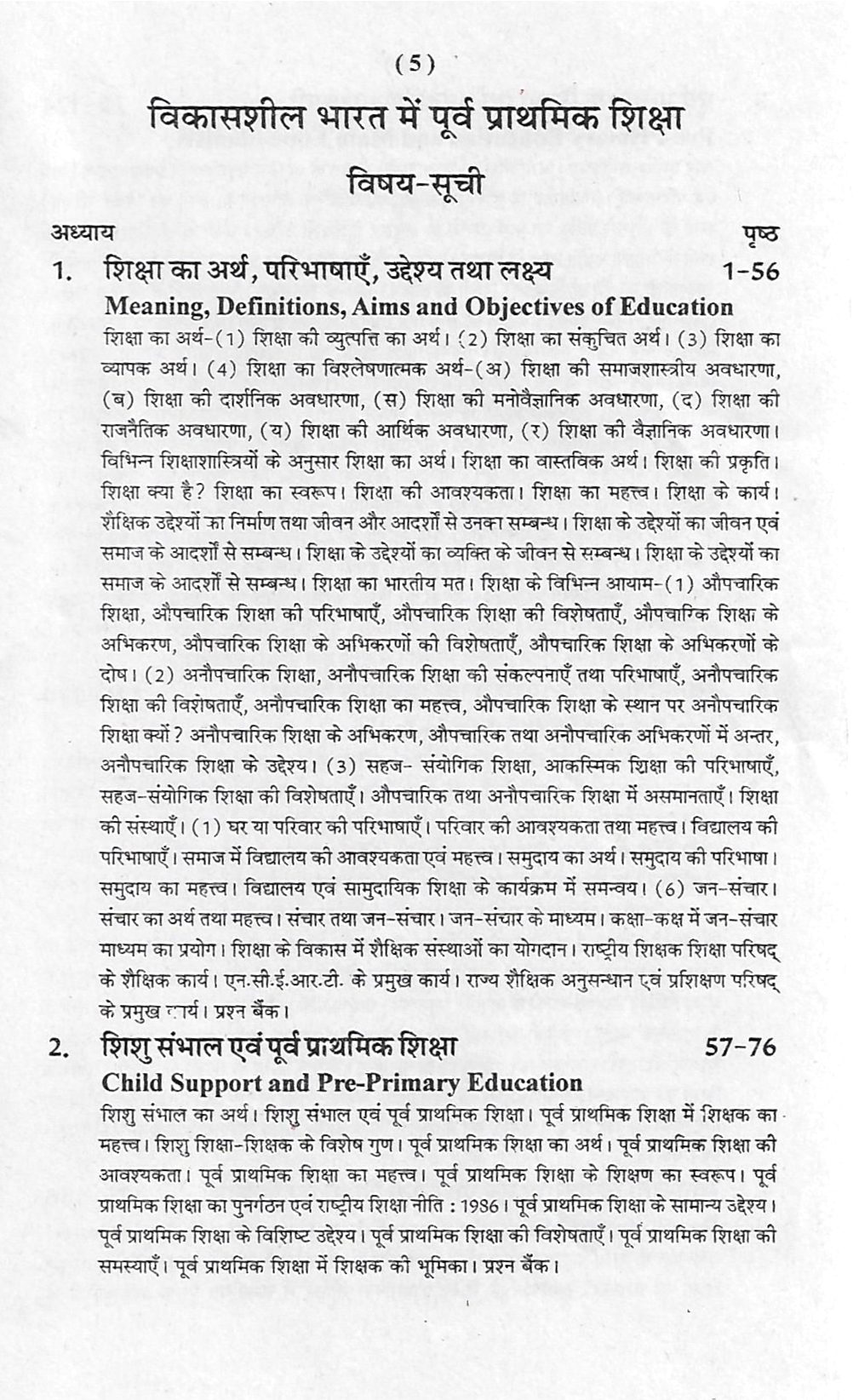 1. (अ) अर्थ, परिभाषा, उद्देश्य एवं लक्ष्य। (ब) औपचारिक, अनौपचारिक तथा सहज-संयोगिक शिक्षा व्यवस्थाएँ। (स) शिक्षा की संस्थाएँ-घर, परिवार, पास-पड़ोस, समाज तथा विभिन्न सामाजिक संस्थाएँ, जन संचार माध्यम। (द) पूर्व प्राथमिक शिक्षा, उद्देश्य एवं लक्ष्य, स्वरूप, विभिन्न शिक्षा संस्थानों का शिशु । शक्षा एवं शिशु देखभाल पर प्रभाव एवं उसमें शिक्षक की भूमिका।