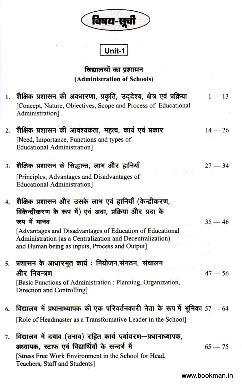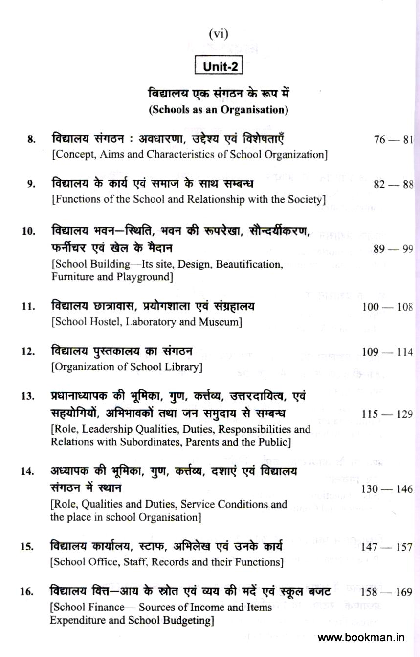 यह पुस्तक ‘विद्यालय संगठन एवं प्रबन्धन’ विश्वविद्यालय अनुदान आयोग (U.G.C.) के द्वारा निर्मित मॉडल पाठ्यक्रम के आधार पर विकसित पाठ्यक्रमों के अनुसार तैयार की गई है. और यह ध्यान रखा गया है कि सम्पूर्ण पाठ्यक्रम एक साथ सुगमता से उपलब्ध हो सके, इसलिए सम्पूर्ण पुस्तक की विषयवस्तु को विषय सूची के अनुसार इकाइयों में बाँटा गया है और फिर इन इकाइयों के अनुरूप आवश्यकतानुसार अध्यायों में विभाजित किया गया है।
