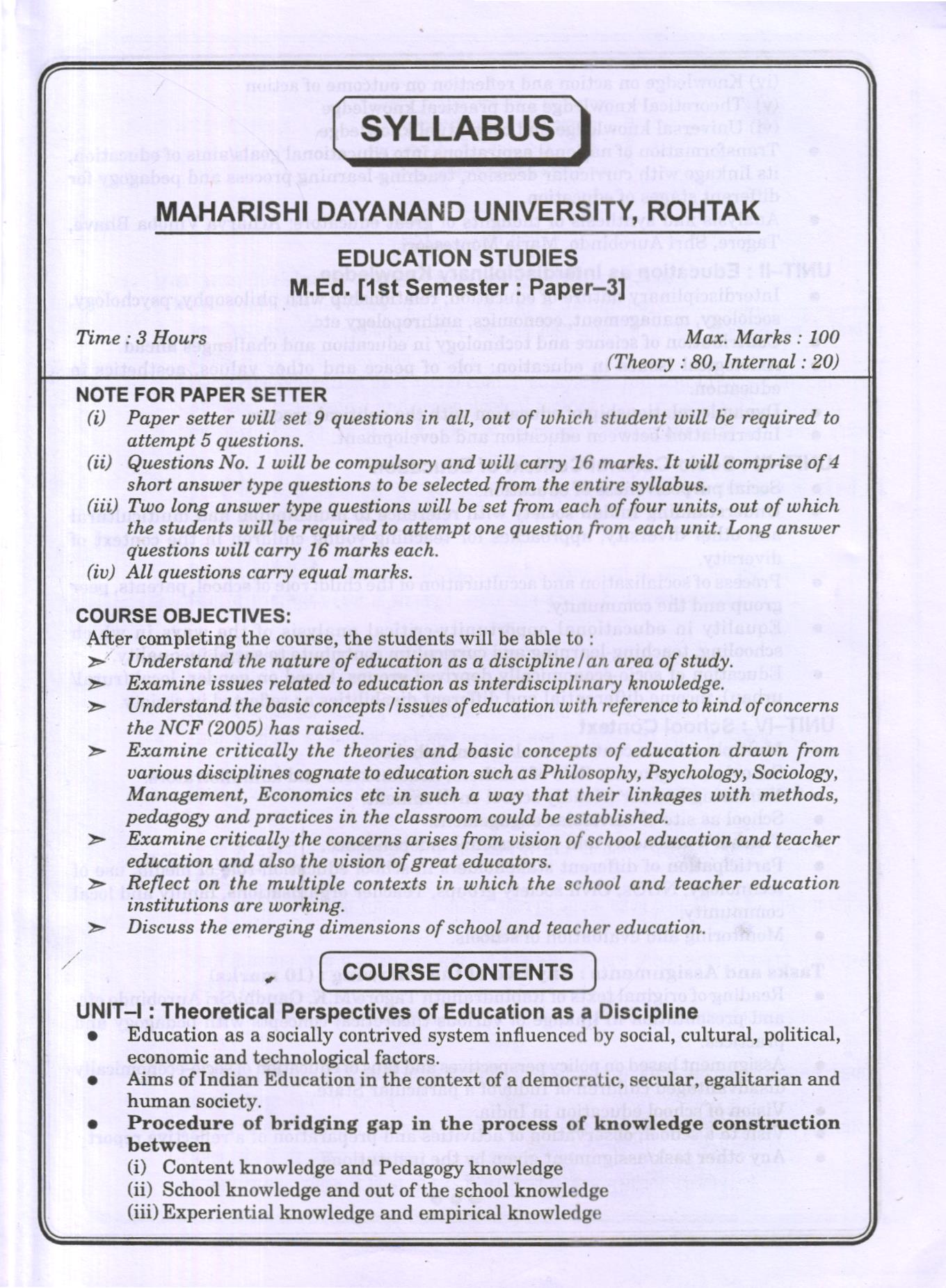 M.ED. Semester-1 Paper-3