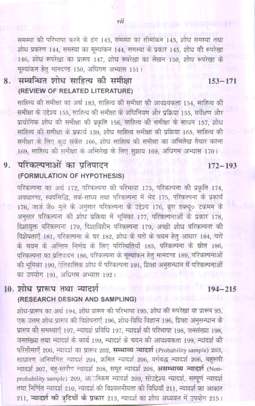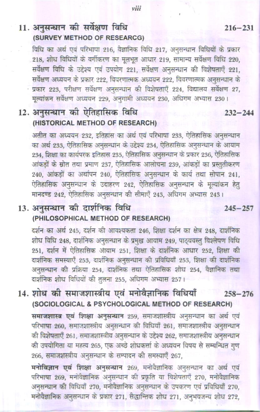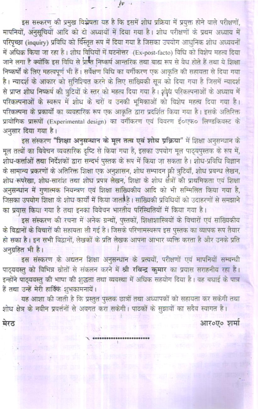 आयोग ने भी महत्व दिया है- “भारत के भाग्य का निर्माण विद्यालय की कक्षाओं में हो रहा है।” आज वेद्यालयों की कक्षा के अन्तर्गत अधिक विधिता है तथा नये-नये पाठ्यक्रमों को भी सम्मिलित किया ॥ रहा है। समाज में परिवर्तन भी बड़ी तीव्रता से हो रहा है। प्रत्येक माता-पिता तथा अभिभावक अपने बालकों को शिक्षा देना चाहते हैं क्योंकि शिक्षा ही एक ऐसी विद्या है जो मानव को मानव बनाती है। समाज के परिवर्तन के साथ ही शिक्षा में भी परिवर्तन उसी गति से अपेक्षित है। तभी शिक्षा समाज की आवश्यकताओं की पूर्ति कर सकेगी। शिक्षा सामाजिक परिवर्तनों पर नियन्त्रण भी करती है। सलिए शिक्षा का अध्ययन क्षेत्र विद्यालय एवं विद्यालय की कक्षाएँ हैं। अब तक के शोध अध्ययनों * कक्षा की समस्याओं पर शोध अध्ययन बहुत कम हुए हैं तथा जो हुए हैं इनके अतिरिक्त अन्य शोध अध्ययनों की व्यवहारिकता शिक्षा में बहुत कम है। यह समस्या विश्वव्यापी है। इसलिए शिक्षा में शिक्षणशास्त्र (Pedagogy) को महत्व दिया जाने लगा है। क्योंकि शिक्षणशास्त्र की मूल पाठ्यवस्तु में विद्यालय की कक्षा को महत्व दइस संस्करण में विश्वविद्यालयों के एम०ए० (शिक्षाशास्त्र), एम०एड० तथा एम० फिल० के यतन पाठ्यक्रमों को सम्मिलित किया गया है और सम्पूर्ण शिक्षा अनुसन्धान की पाठ्यवस्तु को ड़तीस अध्यायों में प्रस्तुत किया गया है। इस पुस्तक के प्रथम भाग में शिक्षा अनुसन्धान के मूल तत्व था शोध प्रक्रिया को विस्तृत रूप में दिया गया है। अन्तिम भाग में शिक्षा अनुसन्धान की प्रक्रिया में युक्त की जाने वाली सांख्यिकी को दिया गया है। इस संस्करण में शिक्षा अनुसन्धान के मूल व-ज्ञान, परिपृच्छा, वैधानिक परिपृच्छा, वैधानिक विधि, प्रतिरूप, प्रतिमान, सिद्धान्त, आयाम, घ-विज्ञान तथा आव्यूह की व्याख्या की गई है। समाजशास्त्रीय शोध विधि तथा मनोवैज्ञानिक शोध धि का भी उल्लेख किया गया है। इसमें शोध निष्कर्षों की आन्तरिक व बाह्य वैधता को एक अध्याय समझाया गया है। इस पुस्तक में शिक्षणशास्त्र के शोध आयामों को भी एक पृथक् अध्याय में दिया या है।