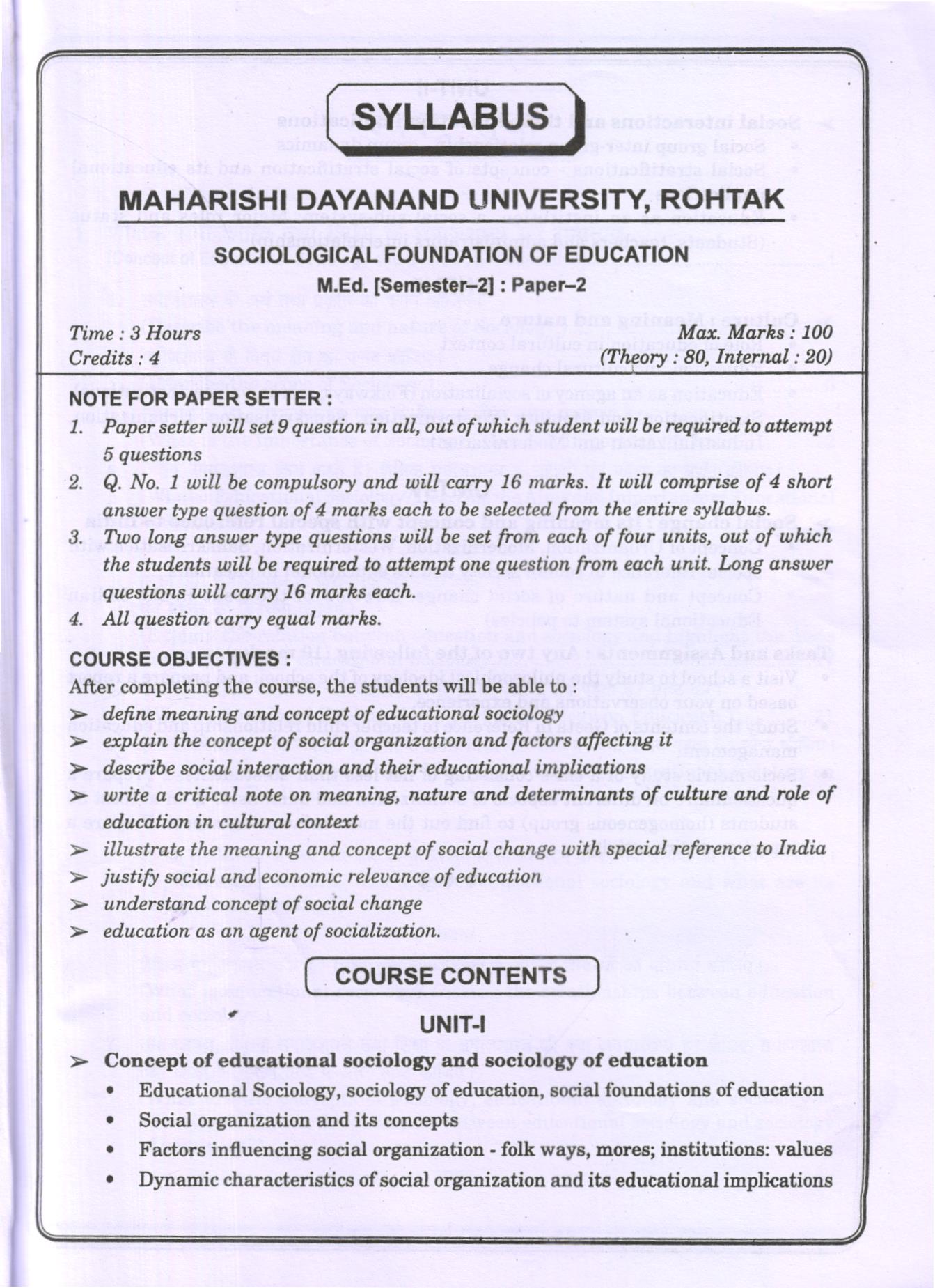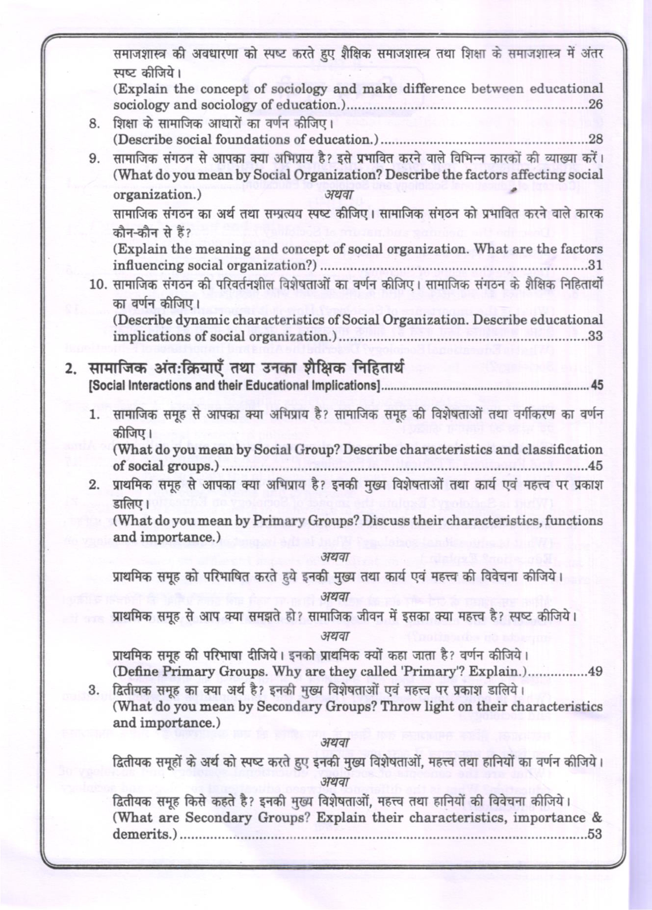 शिक्षा का समाजशास्त्रीय आधार (Sociological Foundations of Education) Hindi