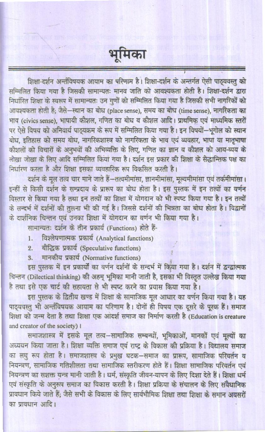 इस पुस्तक में इन प्रकार्यों का वर्णन दर्शनों के सन्दर्भ में किया गया है। दर्शन में द्वन्द्वात्मक चिन्तन (Dilectical thinking) की अहम् भूमिका मानी जाती है, इसका भी विस्तृत उल्लेख किया गया है तथा इसे एक चार्ट की सहायता से भी स्पष्ट करने का प्रयास किया गया है।