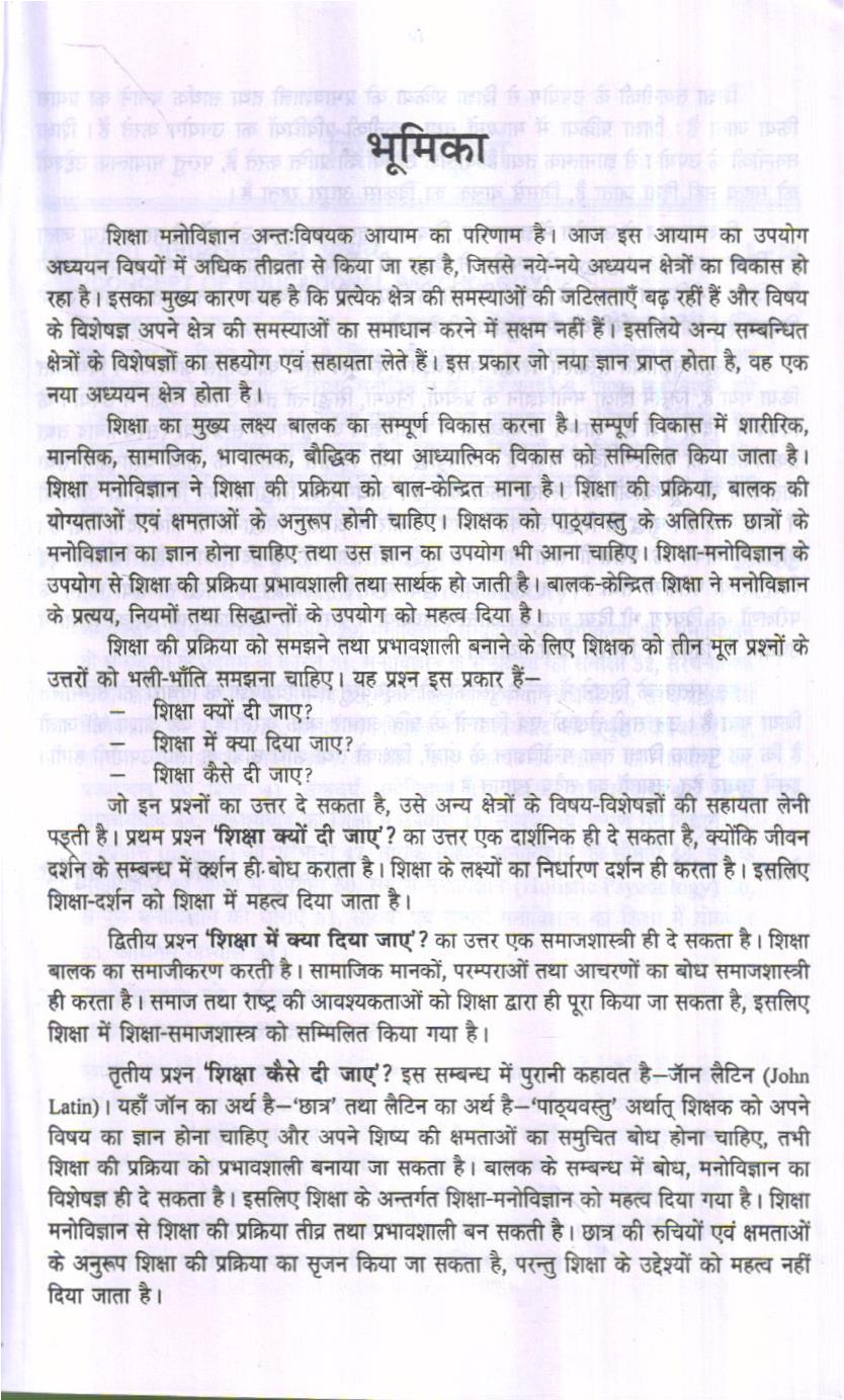 शिक्षा का मुख्य लक्ष्य बालक का सम्पूर्ण विकास करना है। सम्पूर्ण विकास में शारीरिक, मानसिक, सामाजिक, भावात्मक, बौद्धिक तथा आध्यात्मिक विकास को सम्मिलित किया जाता है। शिक्षा मनोविज्ञान ने शिक्षा की प्रक्रिया को बाल-केन्द्रित माना है। शिक्षा की प्रक्रिया, बालक की योग्यताओं एवं क्षमताओं के अनुरूप होनी चाहिए। शिक्षक को पाठ्यवस्तु के अतिरिक्त छात्रों के मनोविज्ञान का ज्ञान होना चाहिए तथा उस ज्ञान का उपयोग भी आना चाहिए। शिक्षा-मनोविज्ञान के उपयोग से शिक्षा की प्रक्रिया प्रभावशाली तथा सार्थक हो जाती है। बालक-केन्द्रित शिक्षा ने मनोविज्ञान के प्रत्यय, नियमों तथा सिद्धान्तों के उपयोग को महत्व दिया है।