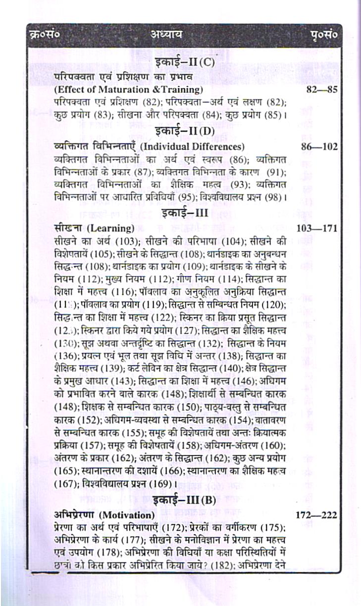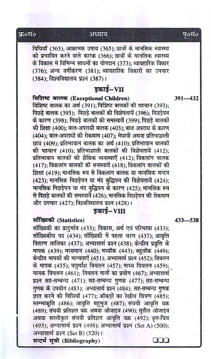 पुस्तक में प्रत्ययों (Concepts) को समझाने की बारीकी से प्रयास किया गया है तथा यथास्थान उपयुक्त उदाहरणों के द्वारा भरपूर प्रयास किया गया है कि विद्यार्थी प्रत्येक तथ्य को भली-भांति समझ सकें। शोध कार्यों का यथास्थान समावेश पुस्तक की प्रमुख विशेषता है। प्रत्येक विचारधारा से सम्बन्धि ात विद्वान का नाम उसी स्थान पर दिया गया है जहाँ उस धारा की चर्चा हुई है।