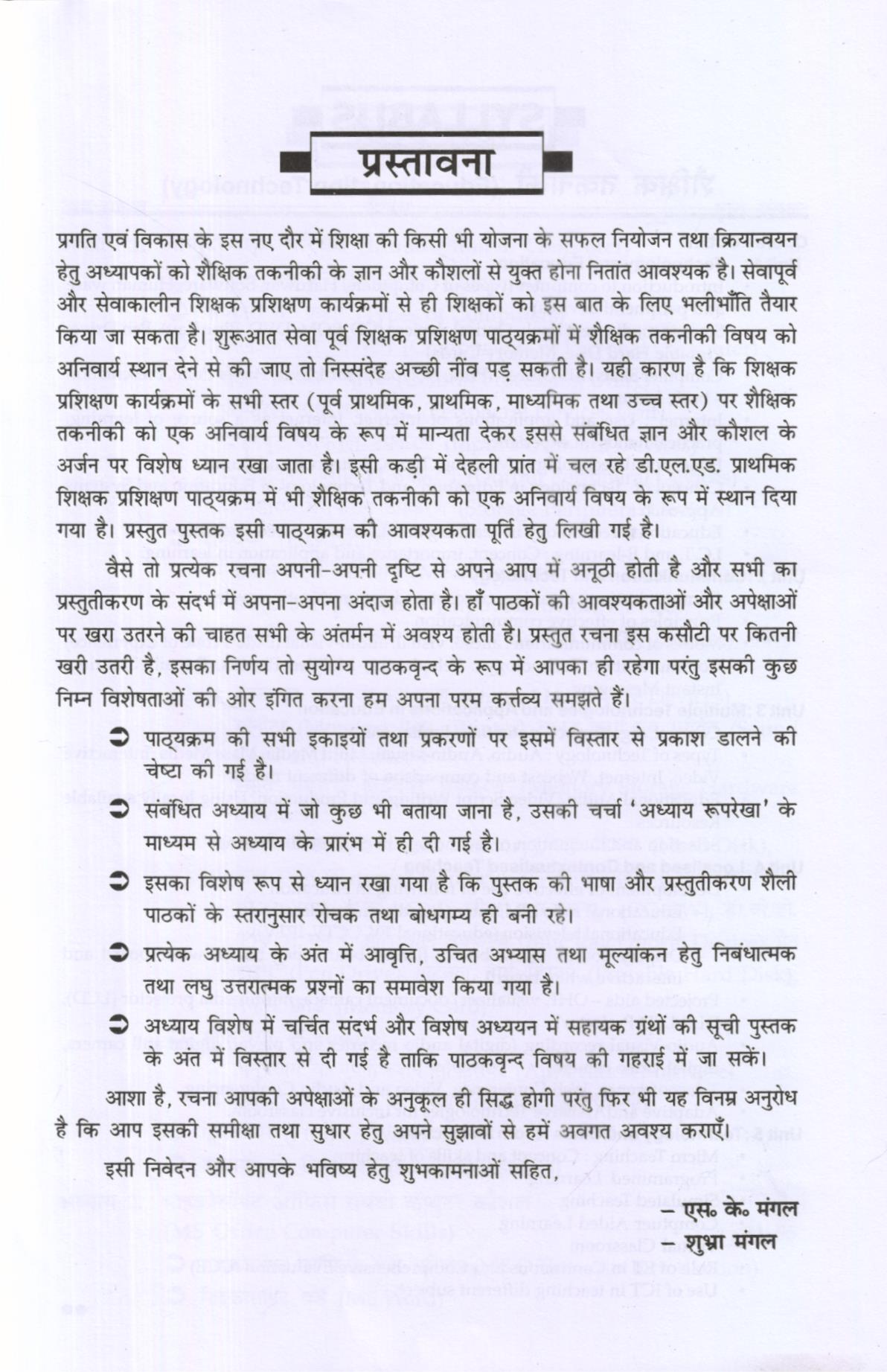 प्रगति एवं विकास के इस नए दौर में शिक्षा की किसी भी योजना के सफल नियोजन तथा क्रियान्वयन हेतु अध्यापकों को शैक्षिक तकनीकी के ज्ञान और कौशलों से युक्त होना नितांत आवश्यक है। सेवापूर्व और सेवाकालीन शिक्षक प्रशिक्षण कार्यक्रमों से ही शिक्षकों को इस बात के लिए भलीभाँति तैयार किया जा सकता है। शुरूआत सेवा पूर्व शिक्षक प्रशिक्षण पाठ्यक्रमों में शैक्षिक तकनीकी विषय को अनिवार्य स्थान देने से की जाए तो निस्संदेह अच्छी नींव पड़ सकती है। यही कारण है कि शिक्षक प्रशिक्षण कार्यक्रमों के सभी स्तर (पूर्व प्राथमिक, प्राथमिक, माध्यमिक तथा उच्च स्तर) पर शैक्षिक तकनीकी को एक अनिवार्य विषय के रूप में मान्यता देकर इससे संबंधित ज्ञान और कौशल के अर्जन पर विशेष ध्यान रखा जाता है। इसी कड़ी में देहली प्रांत में चल रहे डी.एल.एड. प्राथमिक शिक्षक प्रशिक्षण पाठ्यक्रम में भी शैक्षिक तकनीकी को एक अनिवार्य विषय के रूप में स्थान दिया गया है। प्रस्तुत पुस्तक इसी पाठ्यक्रम को आवश्यकता पूर्ति हेतु लिखी गई है।