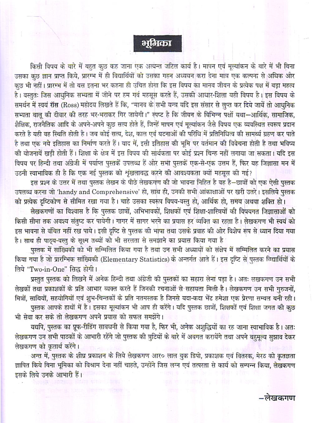 पुस्तक आपके हाथों में है। इसका मूल्यांकन भी आप ही करेंगे। यदि पुस्तक छात्रों, शिक्षकों एवं शिक्षा जगत की कुछ भी सेवा कर सके तो लेखकगण अपने प्रयास को सफल समझेंगे।
