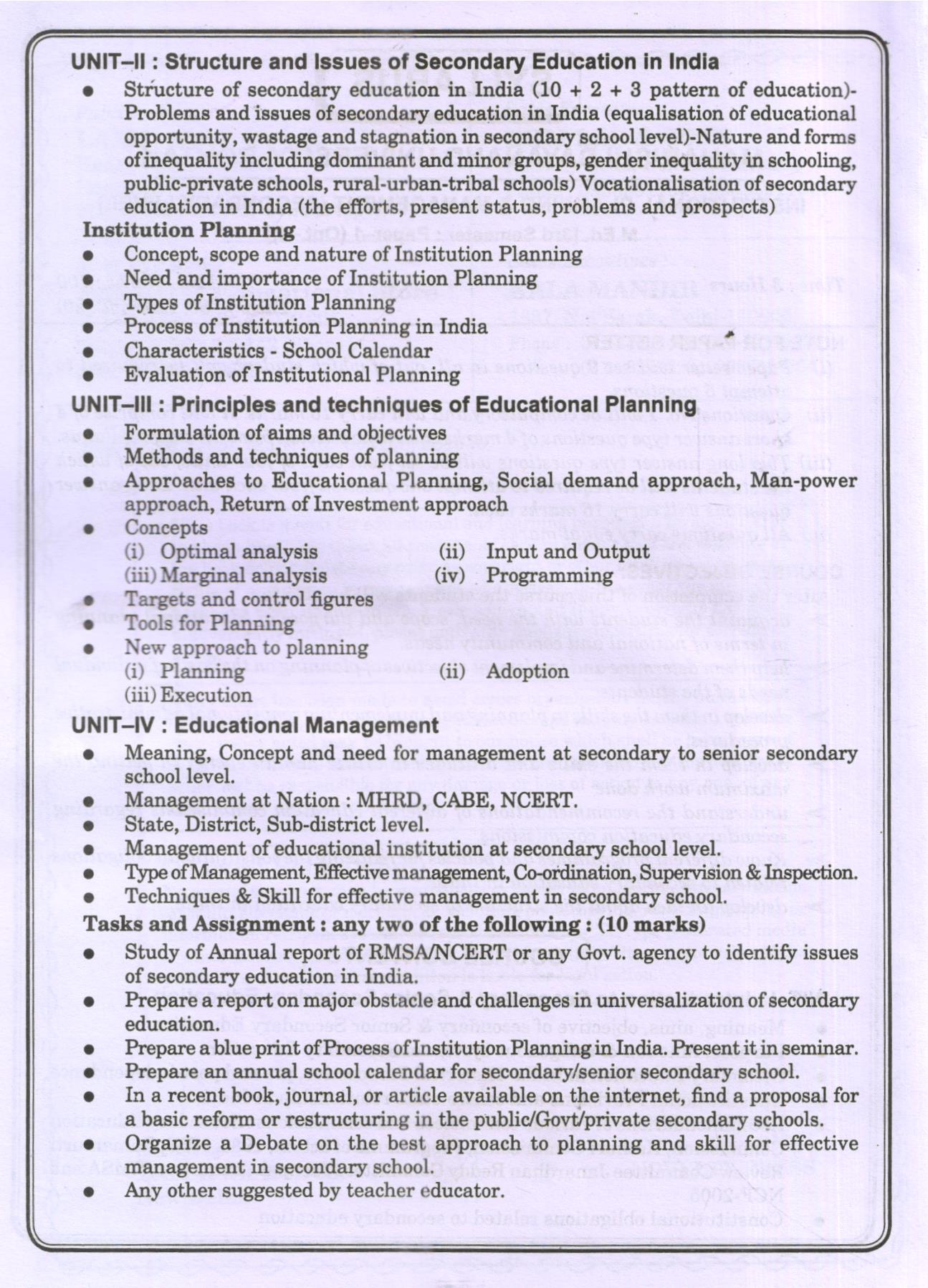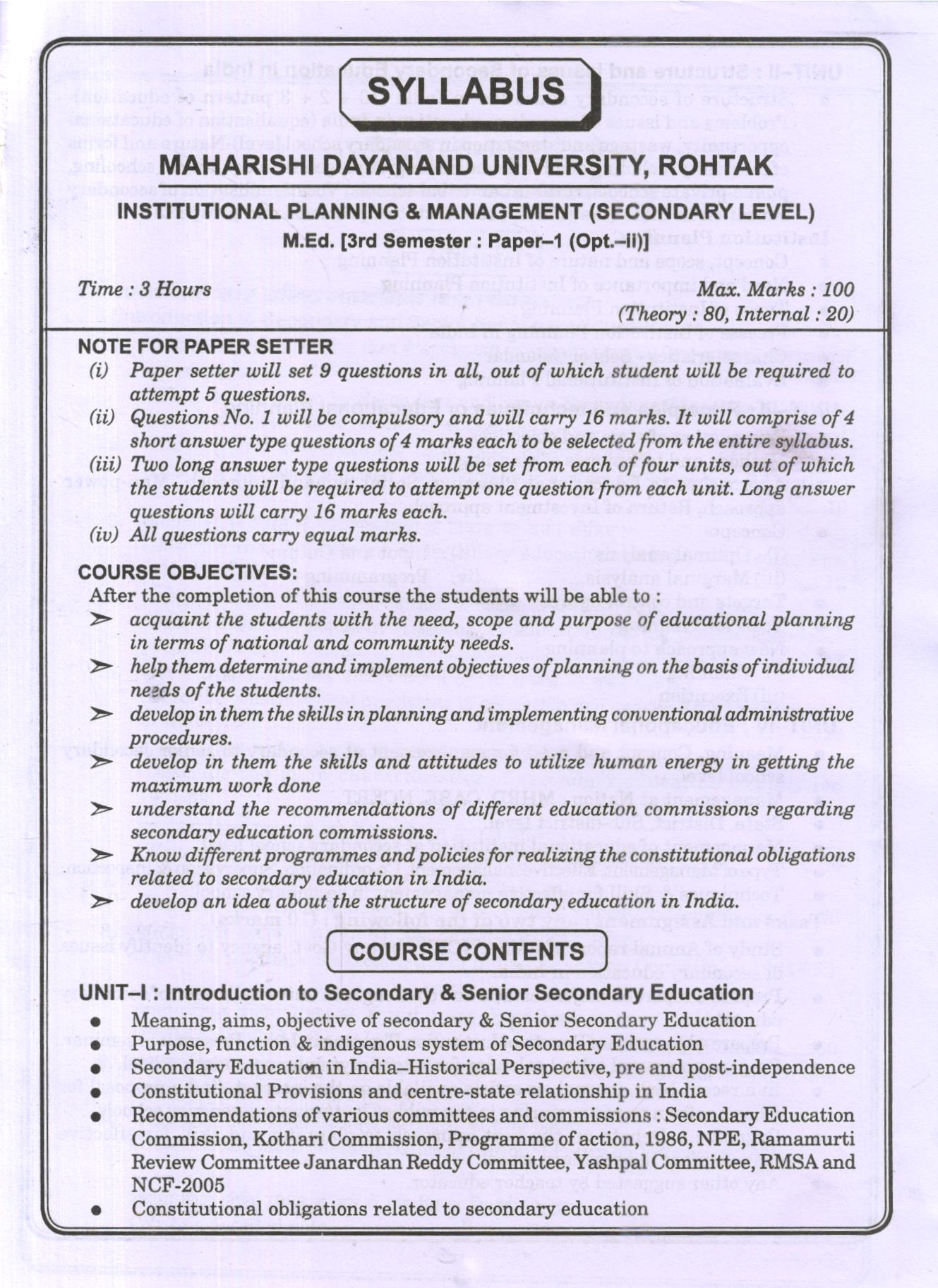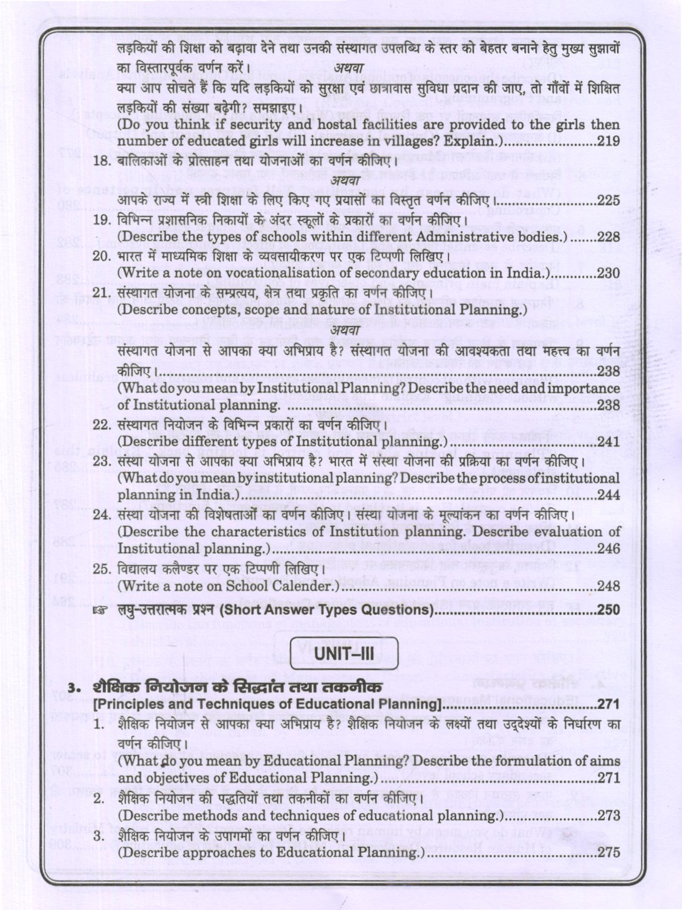 संस्थागत नियोजन तथा प्रबन्धन (माध्यमिक स्तर) INSTITUTIONAL PLANNING AND MANAGEMENT (SECONDARY LEVEL) Hindi