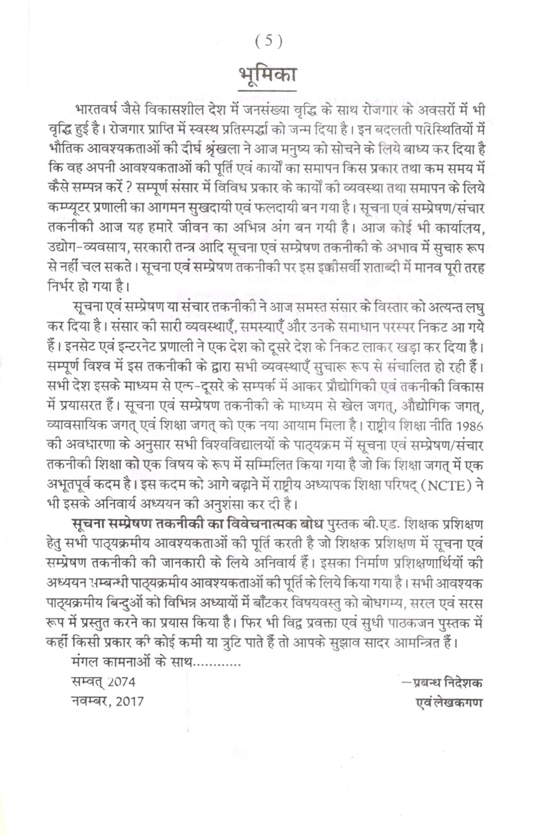 भारतवर्ष जैसे विकासशील देश में जनसंख्या वृद्धि के साथ रोजगार के अवसरों में भी वृद्धि हुई है। रोजगार प्राप्ति में स्वस्थ प्रतिस्पर्दा को जन्म दिया है। इन बदलती परिस्थितियों में भौतिक आवश्यकताओं की दीर्घ श्रृंखला ने आज मनुष्य को सोचने के लिये बाध्य कर दिया है कि वह अपनी आवश्यकताओं की पूर्ति एवं कार्यों का समापन किस प्रकार तथा कम समय में कैसे सम्पन्न करें ? सम्पूर्ण संसार में विविध प्रकार के कार्यों की व्यवस्था तथा समापन के लिये कम्प्यूटर प्रणाली का आगमन सुखदायी एवं फलदायी बन गया है। सूचना एवं सम्प्रेषण/संचार तकनीकी आज यह हमारे जीवन का अभिन्न अंग बन गयी है। आज कोई भी कार्यालय, उद्योग-व्यवसाय, सरकारी तन्त्र आदि सूचना एवं सम्प्रेषण तकनीकी के अभाव में सुचारु रूप से नहीं चल सकते। सूचना एवं सम्प्रेषण तकनीकी पर इस इक्कीसवीं शताब्दी में मानव पूरी तरह निर्भर हो गया है।
