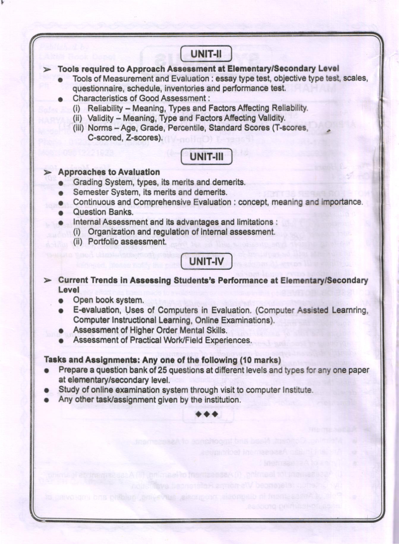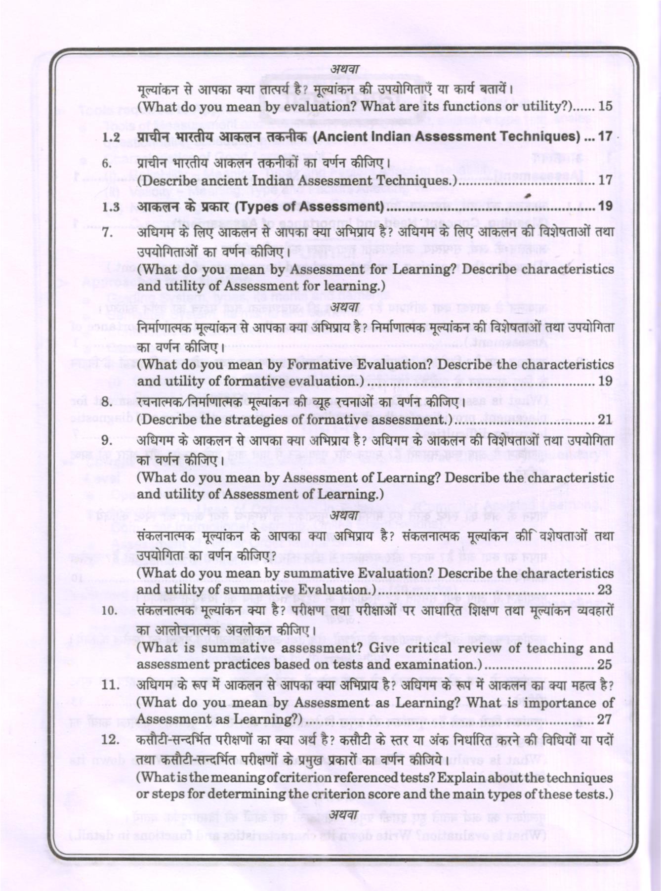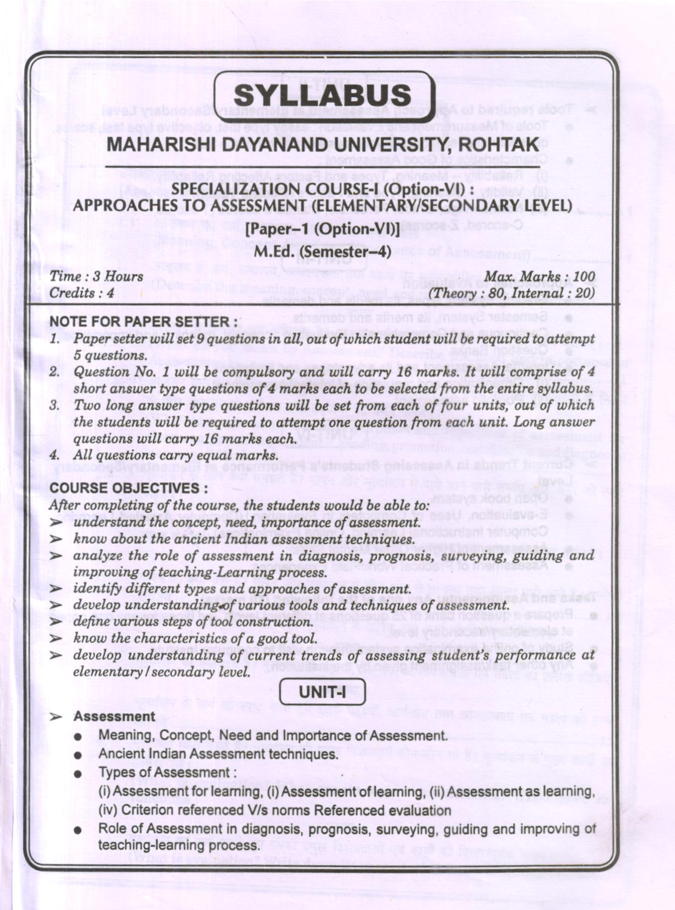 Specialization Course-1 Approaches to Assessment (Elementary/Secondary Level) Hindi