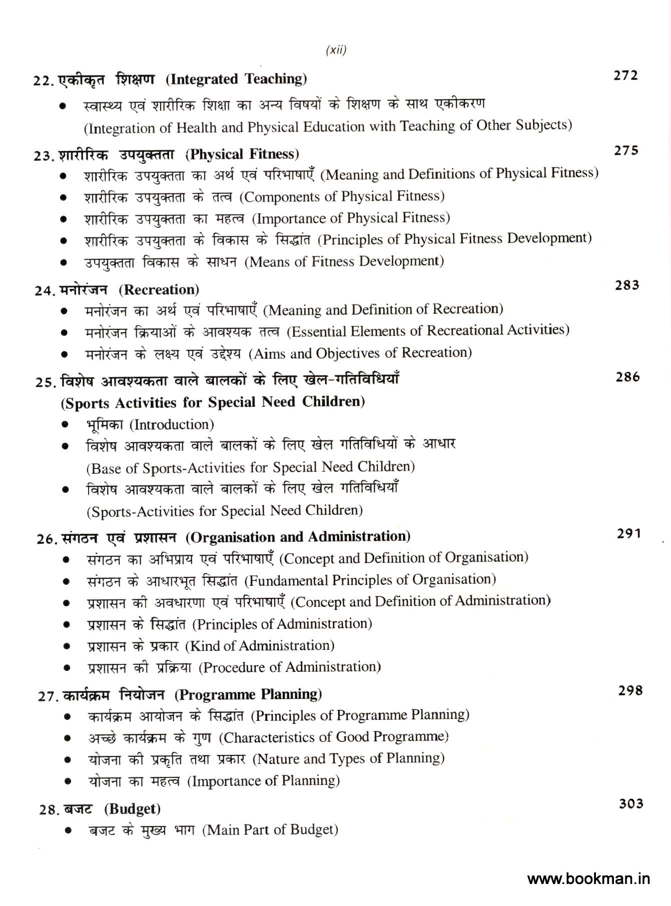 शारीरिक शिक्षा, सम्पूर्ण शिक्षा प्रक्रिया का एक अभिन्न अंग है। शारीरिक शिक्षा बालकों के सर्वांगीण विकास के लिए अत्यन्त आवश्यक है। स्वास्थ्य, योग एवं शारीरिक शिक्षा के महत्वपूर्ण प्रसंगों एवं व्यावहारिक पहलुओं से उचित तालमेल स्थापित करती हुई यह रचना शारीरिक शिक्षा से सम्बंधित आधारभूत प्रकरणों (जिन्हें देश के विभिन्न विश्वविद्यालयों ने दो वर्षीय बी.एड. के शैक्षिक पाठ्यक्रमों में स्थान दे रखा है।) पर समुचित प्रकाश डालती है। निस्संदेह यह पुस्तक विभिन्न विश्वविद्यालयों, शिक्षक प्रशिक्षण संस्थानों एवं एस.सी.ई.आर.टी. / डाईट के बी.एड., डॉ. एल.एड., बी.पी.ई., पी.जी.डी.पी.एड. तथा एम.पी.एड. के पाठ्यक्रमों की आवश्यकताओं को समुचित ढंग से पूरा करती है। इसके साथ ही यह पुस्तक विद्यार्थियों, सेवारत शिक्षकों, शिक्षक प्रशिक्षकों तथा शैक्षिक प्रशासकों आदि हेतु भी समग्र दृष्टिकोण से विशेष उपयोगी है।