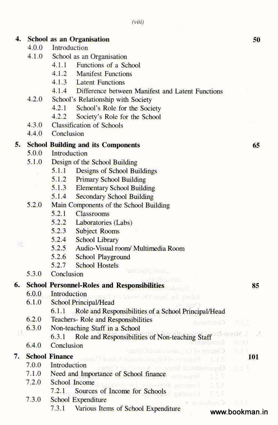 Both authors have rich experience in writing books and research papers. The main feature of their writing is that they focus on the theme and the needs of the target group for whom the study material is being developed. The present book has been written for the B.Ed. student-teachers, though some topics may prove beneficial for the M.Ed. students also. As both authors have a long experience in teaching and exchanging views with student teachers, they incorporated the relevant details which should be thoroughly studied by them. An attempt has been made to simplify the concepts and principles related to School Organization and Management. Simple, relevant and interesting examples have been given to clarify the concepts. Situational experiences have been shared at several places to crystallize certain facts about School Organization and Management.