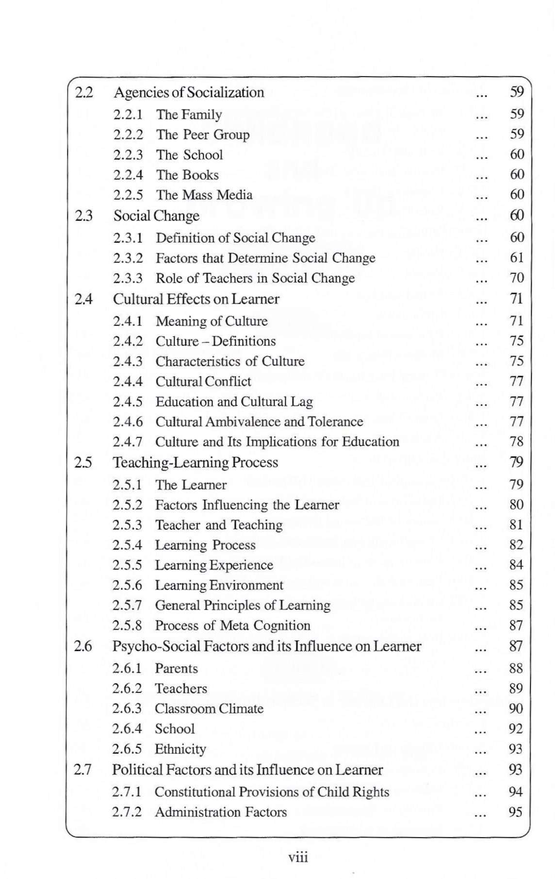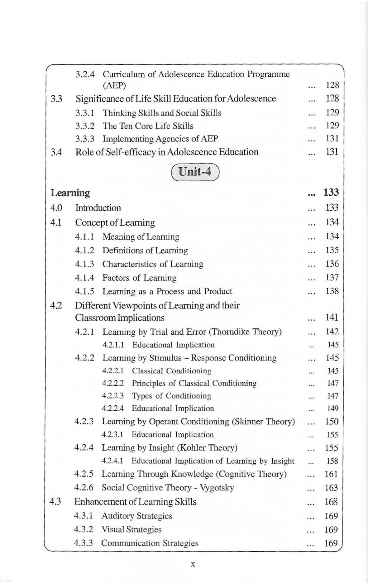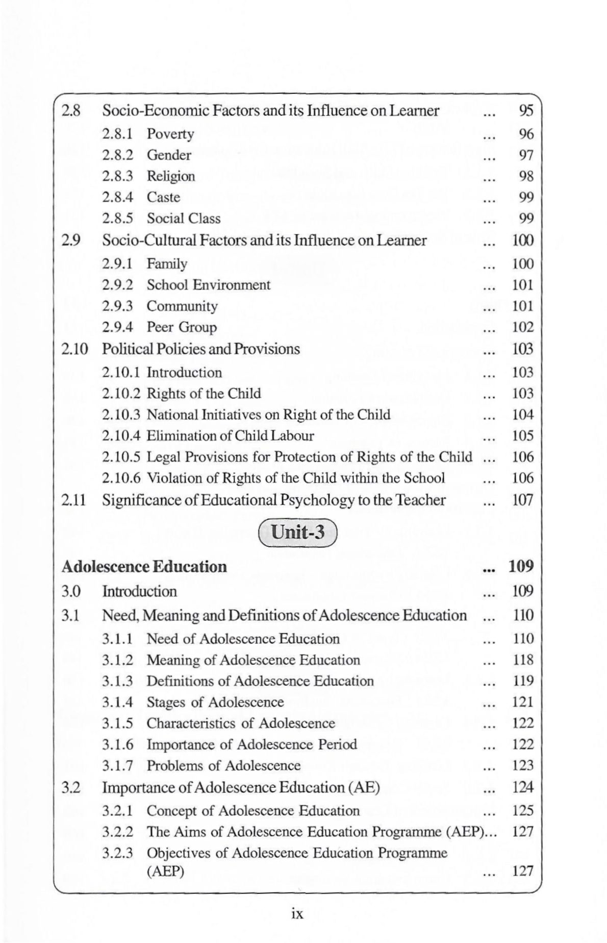 In the first unit, differences between growth and development, Theoretical viewpoints to understand the human development process and concept of individual differences, Community and its educational implications, In the second unit, understanding the Learner in Socio-Cultural Perspectives, Concepts and Agencies of Socialization, Factors influencing the Learner, in the third unit, Adolescence Education, Learning, Different viewpoints of learning and their classroom implications, in the fifth unit, Classroom Implications of Learning Strategies are in detail manner included. Acknowledgements are due to the sources and a suggestion for fine work is always a welcome step.
