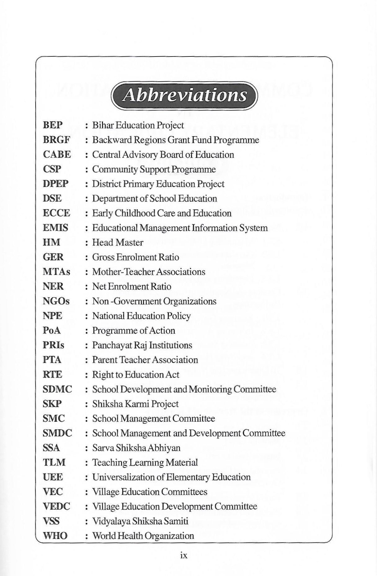 This book is an attempt to examine “Community Participation in Elementary Education” and more specifically to identify the factors that aid or impede the participation of School Management Committees (SMCs)”. It is hence thought it should contain recommendations on ways to enhance the amount and quality of participation in Education. This book will serve many purposes to those who work in the area of educational policy and specific programmes. This is presented with a firm conviction that the participation of parents of school-going children has a major role to play in the realization of the right to education.
