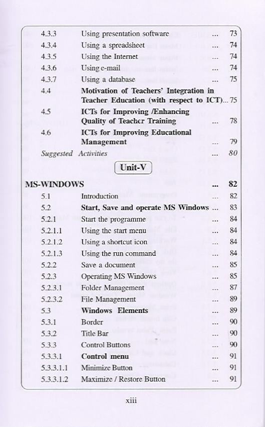 I am extremely happy to present the book “Computers in Education’. This book has been written according to the latest syllabus for B.Ed. course prescribed by the Tami Nadu Teachers Education University to all the government, autonomous and self-financing teacher training colleges. It covers the entire syllabus thoroughly and all the concepts have been described in simple language with necessary illustrations to enable the students to understand them clearly and easily. Even students studying through Tamil medium can understand the concepts in this book very easily as the language and the style of writing are very lucid.
