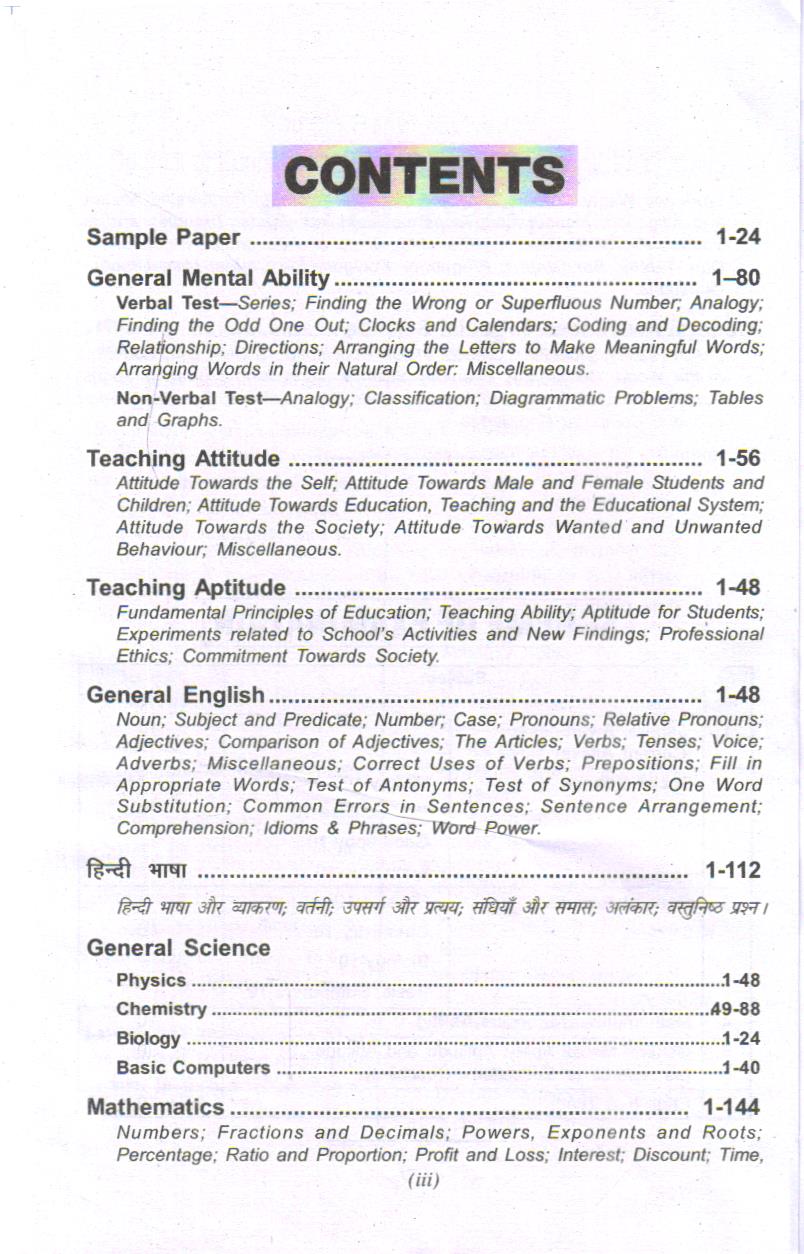 Teaching Aptitude- Fundamental Principles of Education; Teaching Ability; Aptitude for Students; Experiments related to School’s Activities and New Findings; Professional Ethics; Commitment Towards Society.