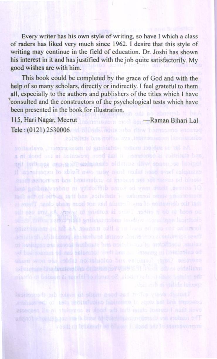 Every writer has his own style of writing, so have I which a class of raders has liked very much since 1962. I desire that this style of writing may continue in the field of education. Dr. Joshi has shown his interest in it and has justified with the job quite satisfactorily. My good wishes are with him.