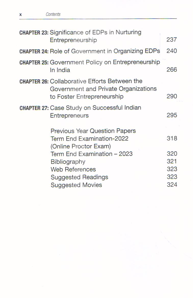 This book is not just a guide, it’s an immersive experience designed to cultivate and refine entrepreneurial mindset through integrating brainstorming exercises, real-world examples of successful entrepreneurs and their ventures also this book Rich with practical examples and suggested Movies showcasing entrepreneurial qualities to ensuring a practical understanding of the entrepreneurial landscape. Each unit is carefully crafted to deliver specific learning outcomes, complemented by thought- provoking practice questions and previous year question papers to enhance comprehensive understanding of the examination pattern and prepares for future success.