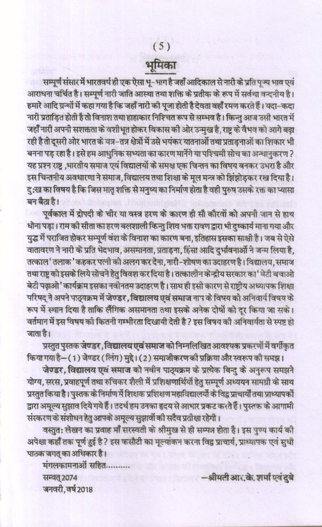 सम्पूर्ण संसार में भारतवर्ष ही एक ऐसा भू-भाग है जहाँ आदिकाल से नारी के प्रति पूज्य भाव एवं आराधना चर्चित है। सम्पूर्ण नारी जाति आस्था तथा शक्ति के प्रतीक के रूप में सर्वथा वन्दनीय है। हमारे आदि ग्रन्थों में कहा गया है कि जहाँ नारी की पूजा होती है देवता वहाँ रमण करते हैं। यदा-कदा भारी प्रताड़ित होती है तो विनाश तथा हाहाकार निश्वित रूप से सम्भव है। किन्तु आज उसी भारत में जहाँ नारी अपनी सशक्तता के वशीभूत होकर विकास की और उन्मुख है, राष्ट्र के वैभव को आगे बढ़ा यी हैतो दूसरी और भारत के यत्र-तत्र क्षेत्रों में उसे भयंकर यातनाओं तथा प्रताड़नाओं का शिकार भी बनना पड़ रहा है। इसे हम आधुनिक सभ्यता का कारण मानेंगे या पश्चिमी सोच का अन्धानुकरण ? यह प्रश्न राष्ट्र, भारतीय समाज एवं विद्यालयों के समक्ष एक चिन्तन का विषय बनकर उभरा है और इस चिन्तनीय अवधारणा ने समाज, विद्यालय तथा शिक्षा के मूल मन्त्र को झिंझोड़कर रख दिया है। दुःख का विषय है कि जिस मातृ शक्ति से मनुष्य का निर्माण होता है वहीं पुरुष उसके रक्त का प्यासा बन बैठा है।
