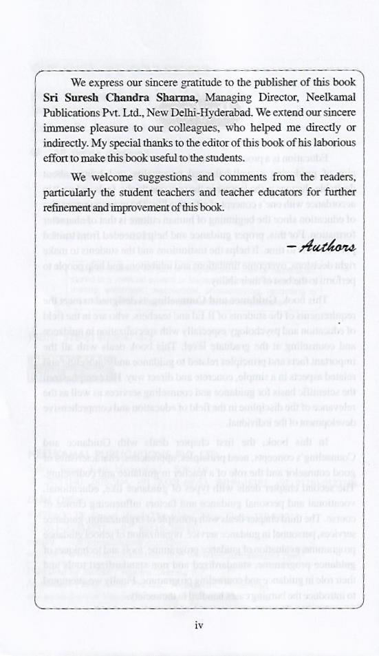 We welcome suggestions and comments from the readers, particularly the student teachers and teacher educators for further refinement and improvement of this book.