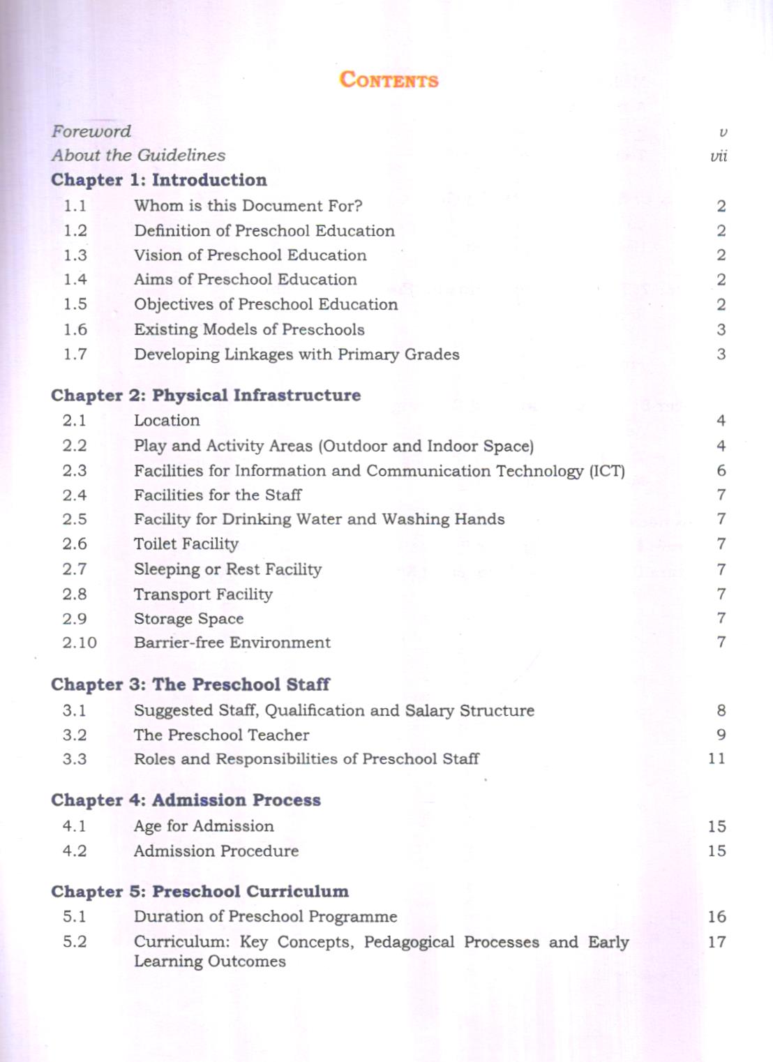 It is in this context that NCERT has come out with two documents Guidelines for Preschool Education and The Preschool Curriculum to help the teachers, administrators, policy planners and other stakeholders in providing quality preschool education. The guidelines provide the parameters for infrastructure, qualifications and salary of preschool staff, admission process, records and registers to be maintained, monitoring and supervision, and importance of coordination and convergence with community and parents.