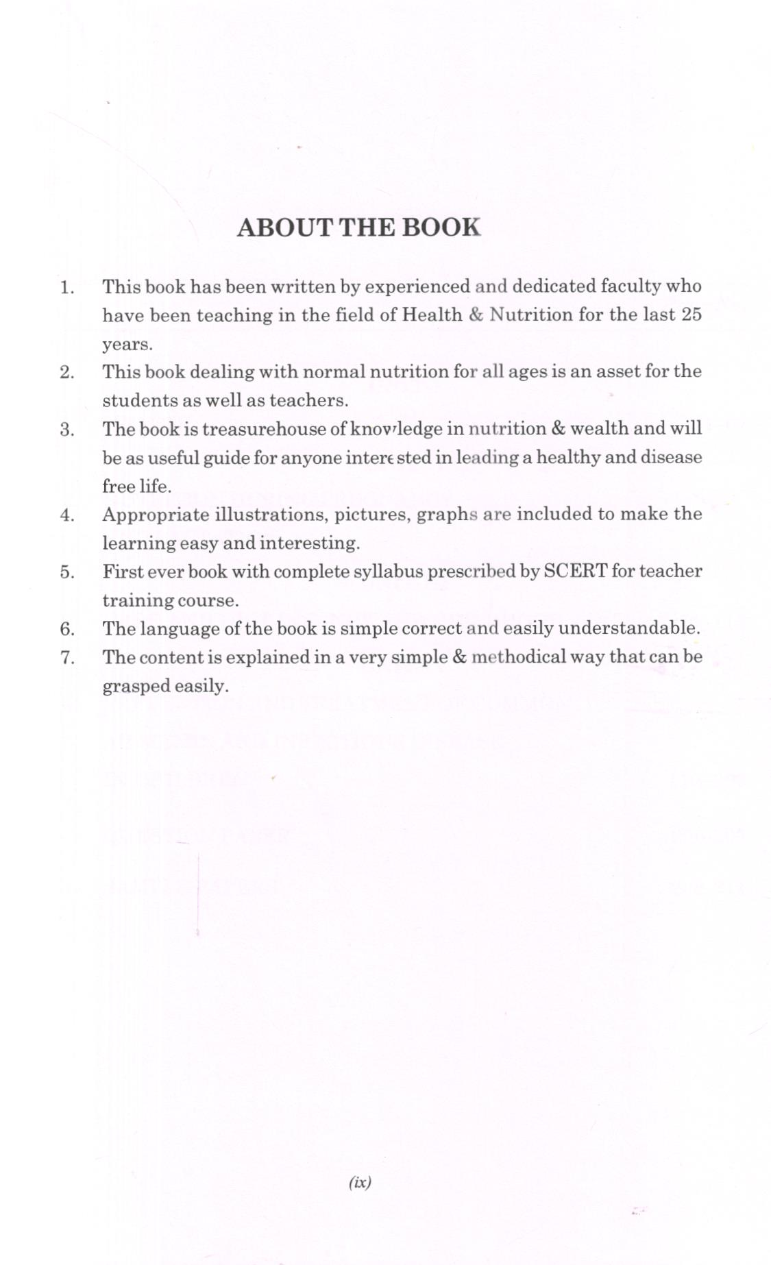 1. This book has been written by experienced and dedicated faculty who have been teaching in the field of Health & Nutrition for the last 25 years.