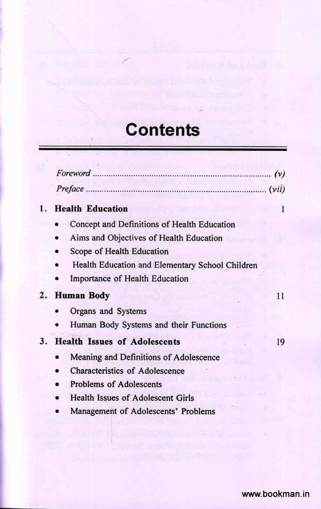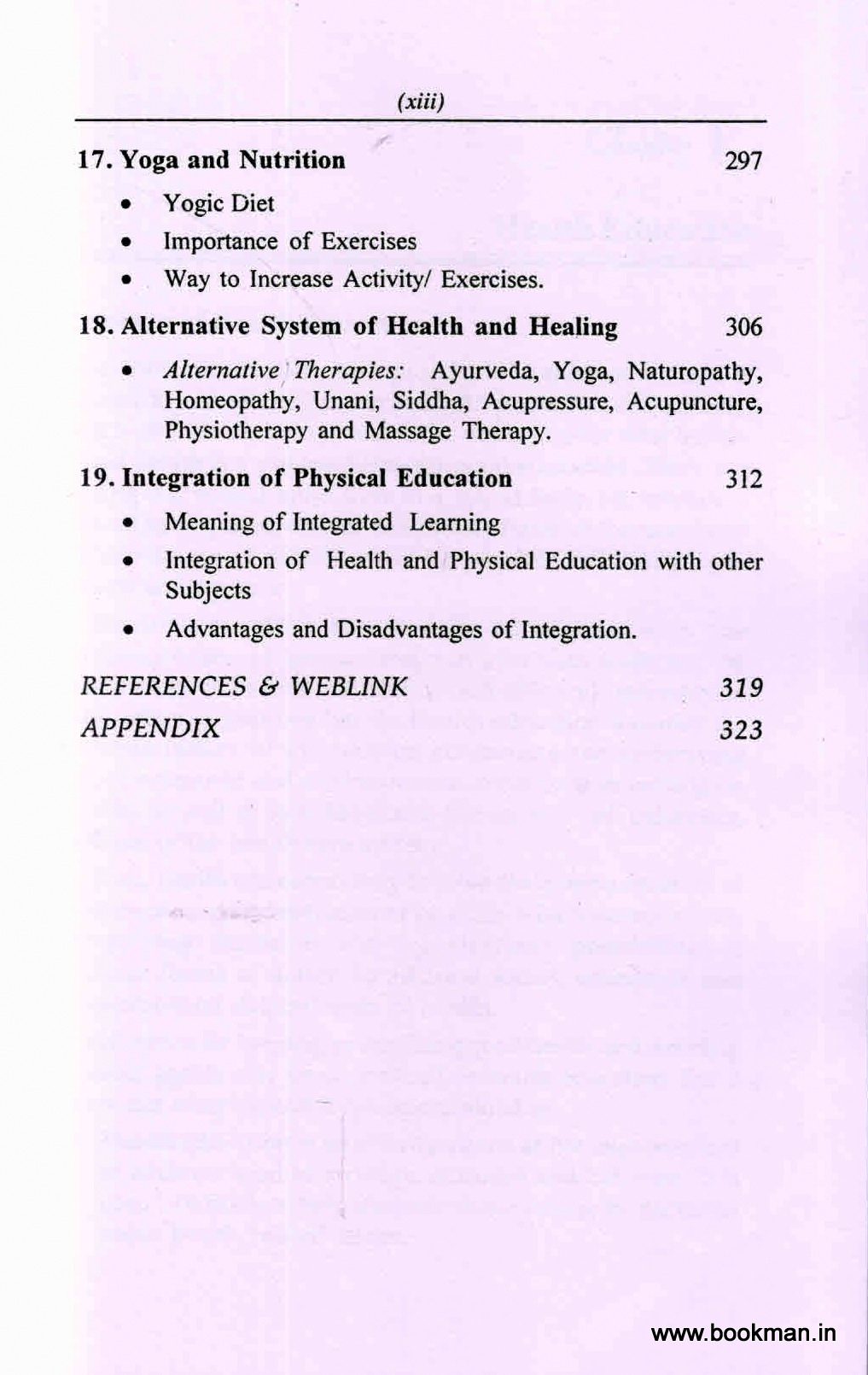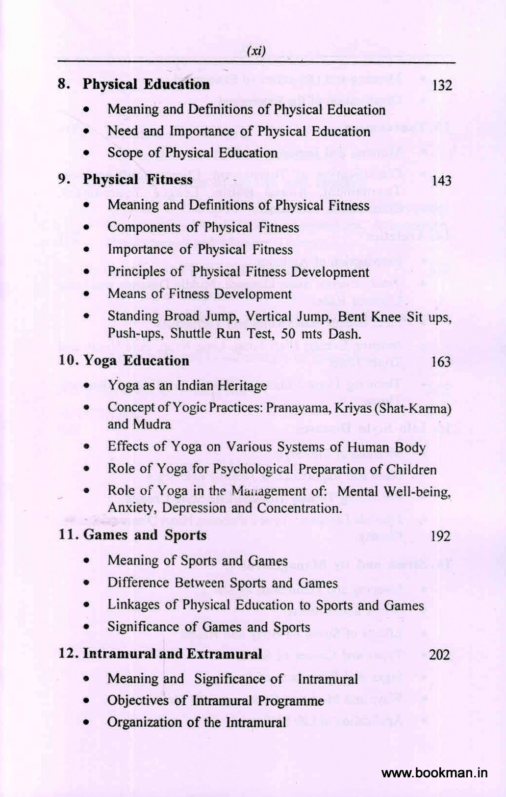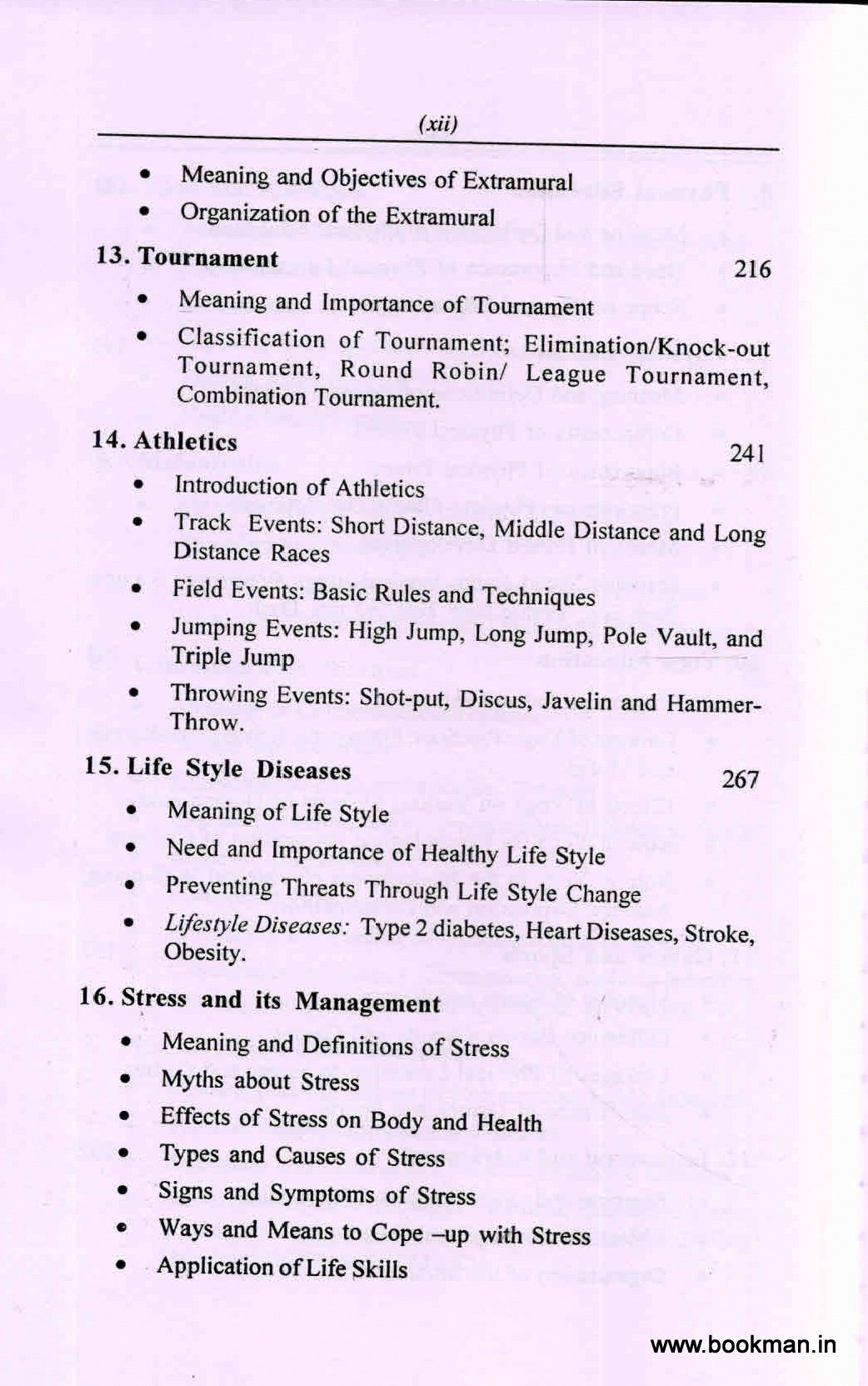 The present book includes topics on human body, health education, health issues of adolescents, food and nutrition, malnutrition, communicable and non-communicable diseases, physical education, physical fitness, yoga education, stress and its management, tournaments, alternative systems of health and healing, lifestyle diseases and their prevention etc. these topics provide students with the information and skills they need to develop a lifelong commitment to an active and healthy lifestyle.