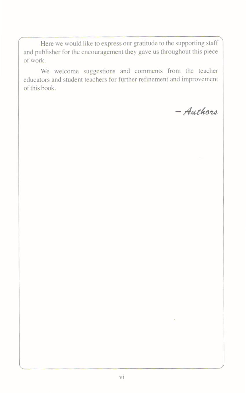 We welcome suggestions and comments from the teacher educators and student teachers for further refinement and improvement of this book.