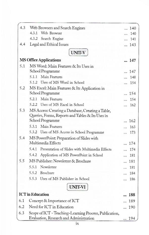 Authors kept in mind the prescribed course of ICT in Education, (10 units) of B.Ed. curriculum while organizing the material to acquaint student teachers and also teachers to utilize this material as a reference and build their teaching by exploring further from time to time with updated concepts and updates in each area.