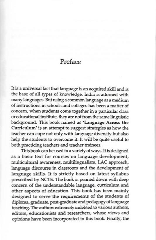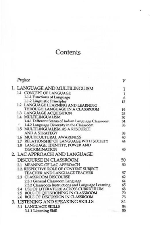 This book can be used in a variety of ways. It is designed as a basic text for courses on language development, multicultural awareness, multilingualism, the LAC approach, language discourse in the classroom and the development of language skills. It is strictly based on the latest syllabus prescribed by NCTE. The book is penned down with deep concern for the understandable language, curriculum and other aspects of education. This book has been mainly designed to serve the requirements of the students of diploma, graduate, post-graduate and pedagogy of language teaching. The authors are extremely indebted to various authors, editors, educationists and researchers, whose views and opinions have been incorporated into this book. Finally, the