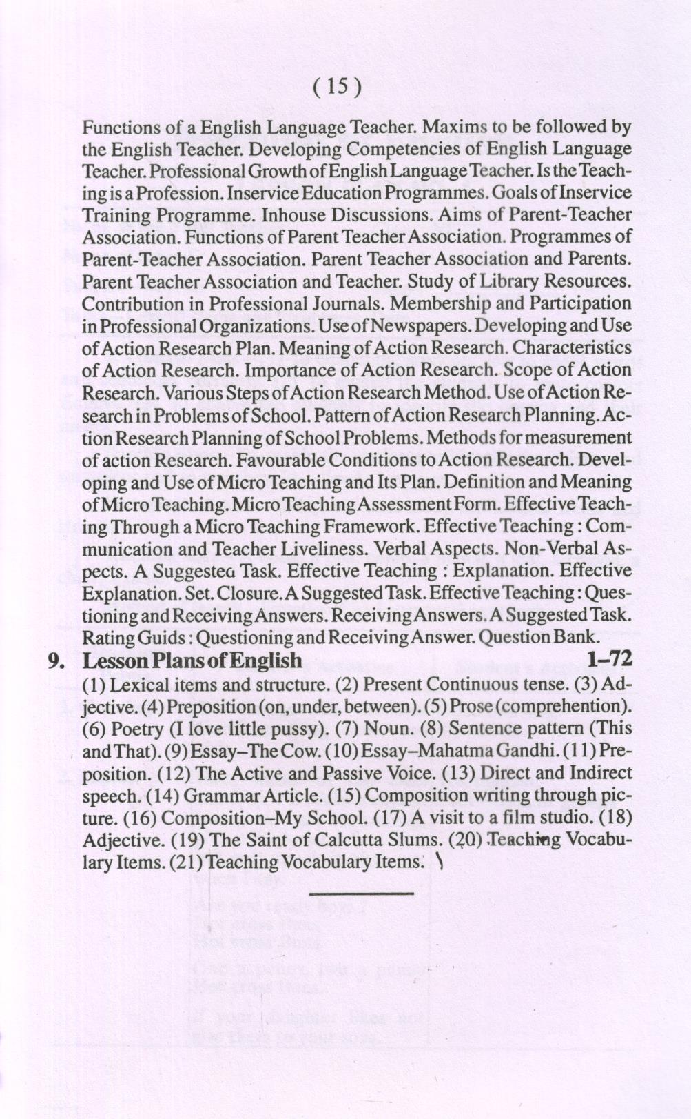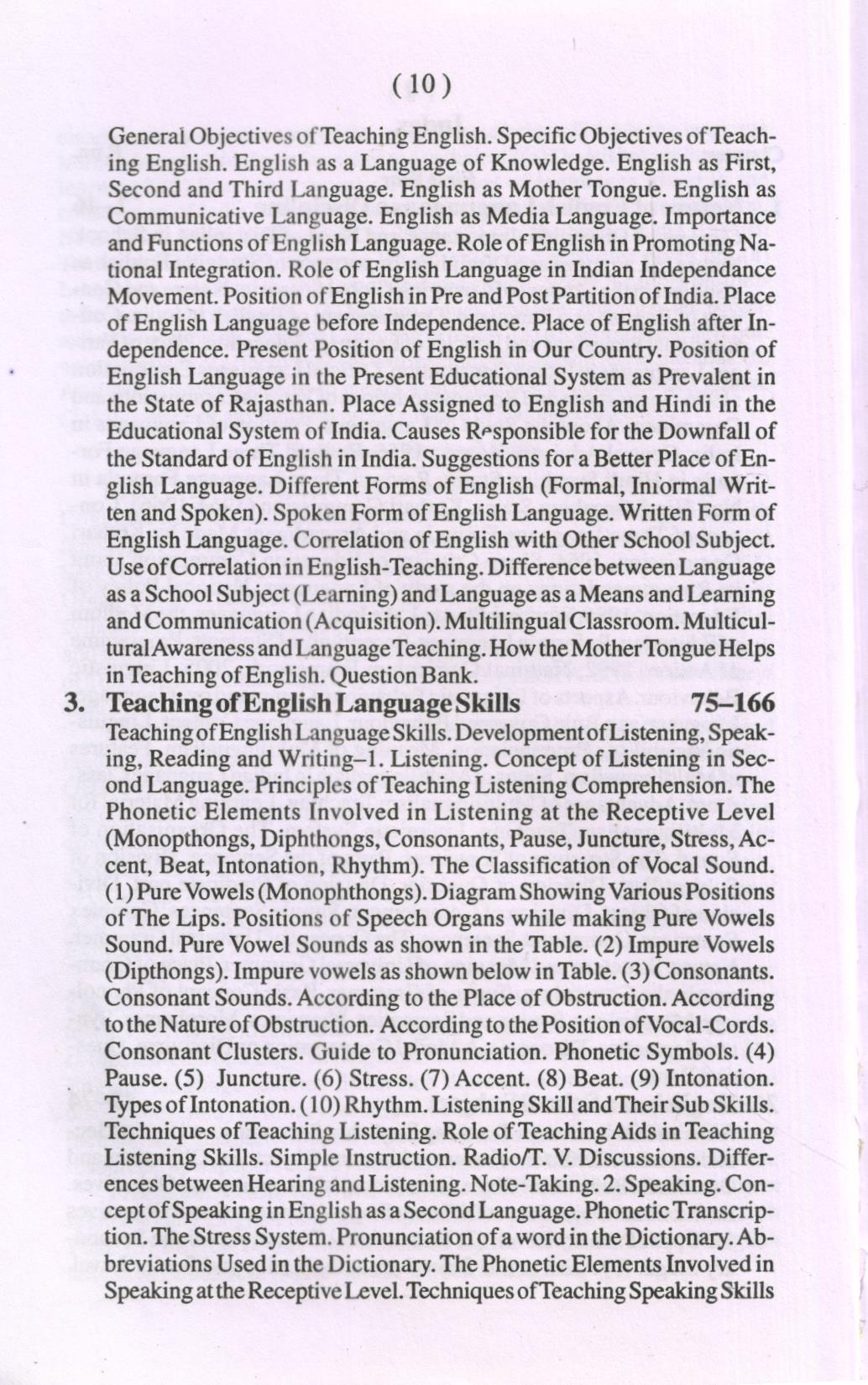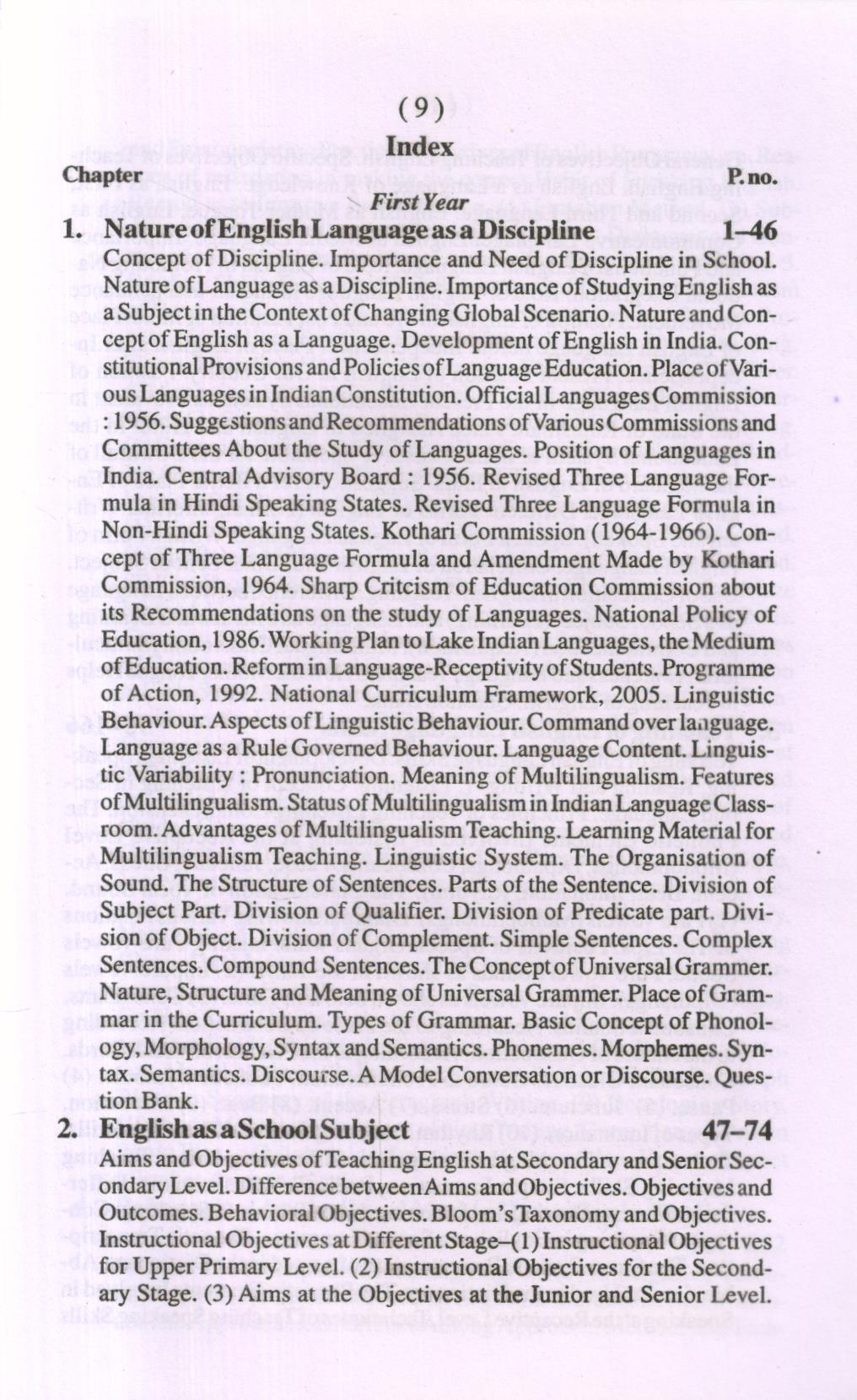 The readers will find the book immense practice utility, easy to under- stand and interesting to read, as it is written and compiled in a systematic manner supplemented by suitable examples and diagrams wherever necessary. Though every care has been taken to present this book in an original style even then a graduate is owed to the authors whose valuable views have been quoted in this book. No stone has been left unturned to make this book more serviceable to those for whom it is meant. The latest developments in the field of education, as well as the problems faced by the English teacher in the present circumstances along with their suitable remedies, have been incorporated in this book ‘Pedagogy of English’ making, it indispensable for the lecturers and the students of B.Ed.