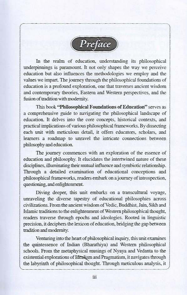 This book “Philosophical Foundations of Education” serves as a comprehensive guide to navigating the philosophical landscape of education. It delves into the core concepts, historical contexts, and practical implications of various philosophical frameworks. By dissecting each unit with meticulous detail, it offers educators, scholars, and learners a roadmap to unravel the intricate connections between philosophy and education.