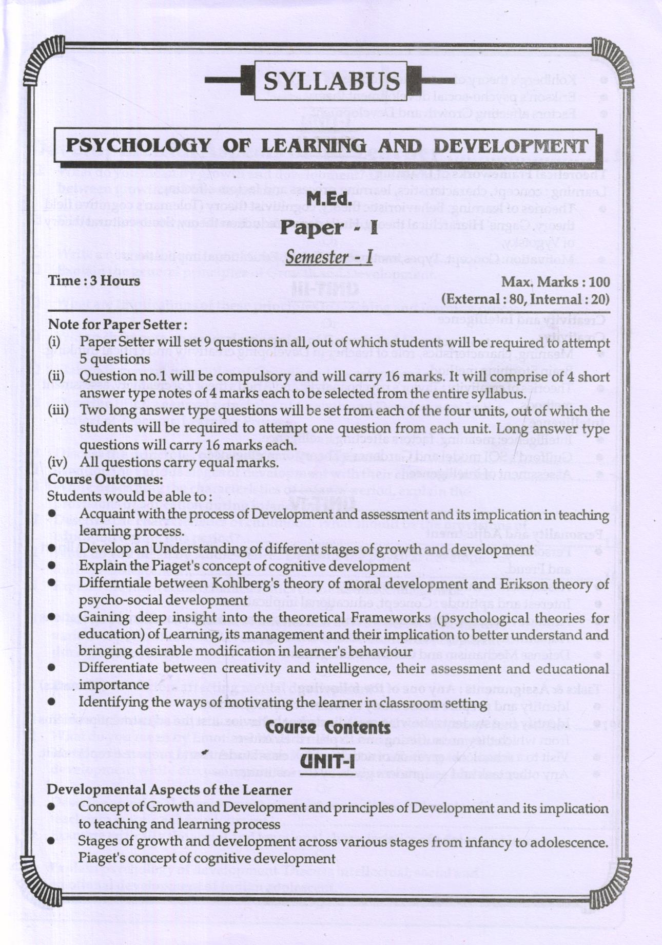 PSYCHOLOGY OF LEARNING AND DEVELOPMENT
