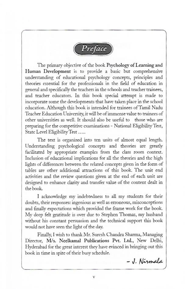 This book “Psychology of Learning and Human Development” provides an exceptional treatment to information on teaching/learning. It is planned to satisfy the overall academic and research needs of students of Educational Psychology in Indian Universities, with special attention to fulfill the specific need of students of Teacher Education. The book provides a comprehensive survey of topics and guides students on how to view and compare concepts and theories, and ways this information may be applied in the classroom. Inclusion of several latest theories, research findings, and challenging application-oriented unit end activities are added attractions.