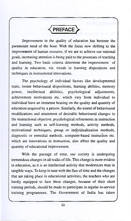 Improvement in the quality of education has become the paramount need of the hour. With the focus now shifting to the improvement of human resource, if we are to achieve our national goals, increasing attention is being paid to the processes of teaching and learning. Two basic criteria determine the improvement of quality in education, viz. trends in learning dispositions and techniques in instructional innovations.