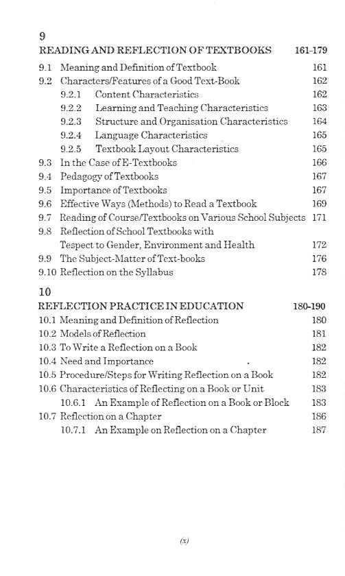 In this book, all the theoretical aspects of the subject are discussed. An attempt is made to give somewhat modern approach as well as comprehensive discussion on all the concepts of reading and reflection. It is tried to present the standardized and latest subject-matter in a lucid and simple style and according to the level of the B.Ed. class. It is expected that this book will surely help the teachers, pupil-teachers and common readers to understand the various aspects of reading documents and texts.