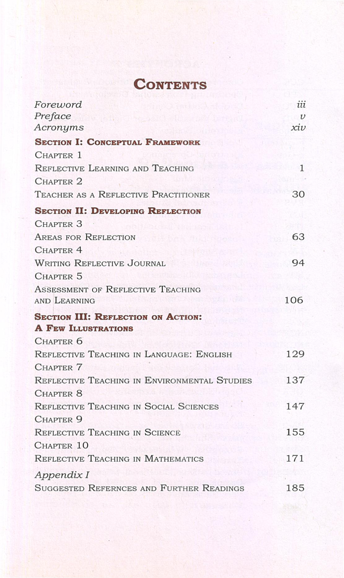 Reflection on one’s own experiences and assumptions, as part of the course and classroom enquiry, critical observation and reflective analysis of the practices of teaching, which are some of the key components of professional growth of a teacher, is crucial professionally. Therefore, this handbook on Reflective Teaching has been developed to serve as a reference material to improve one’s professional practice and expertise. This handbook is expected to facilitate the need to think which aspects of their professional practices are most effective in teaching context; which they would like to continue to use and which one requires to be improved upon.